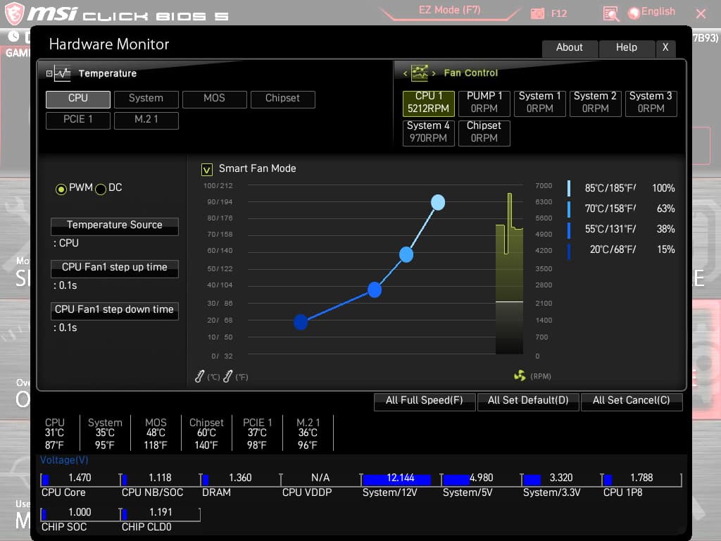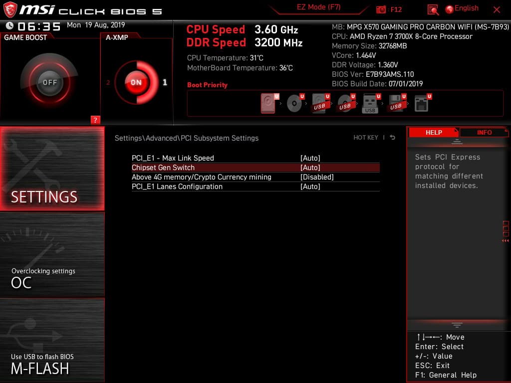 Поэтому отмечаем, что несмотря на среднеценовое позиционирование, возможности MSI MPG X570 Gaming Pro Carbon WiFi в плане охлаждения реализованы хорошо. Еще одним плюсом является то, что все вентиляторы могут управляться как через ШИМ, так и изменением напряжения/тока. Для этого можно воспользоваться настройками UEFI/BIOS.