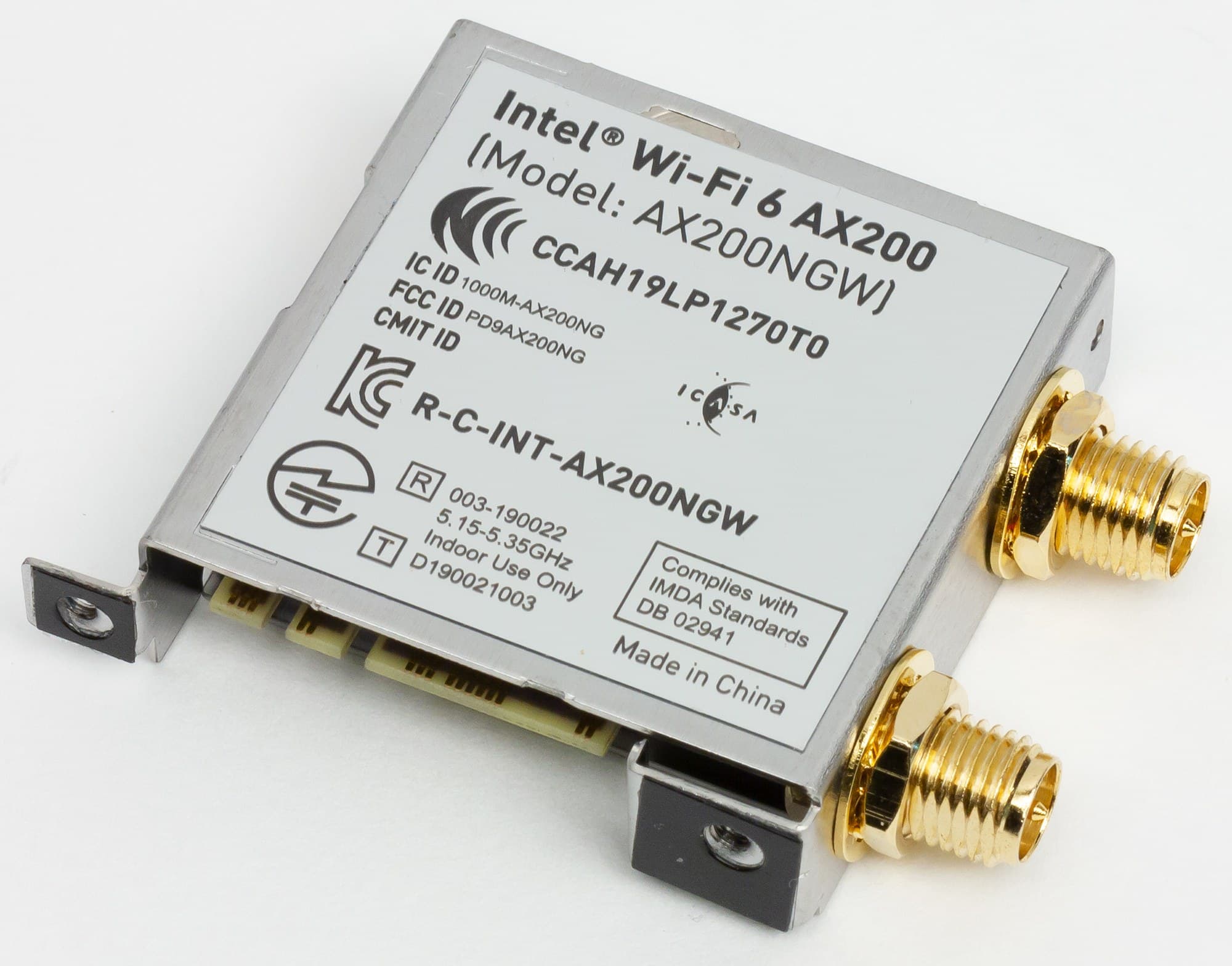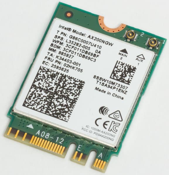 Имеется и комплексный беспроводной адаптер на контроллере Intel AX-200NGW, через который реализованы Wi-Fi 6 и Bluetooth 5.0. Он установлен в слот M.2 (E-key), и его разъемы для привинчивания выносных антенн выведены на заднюю панель.