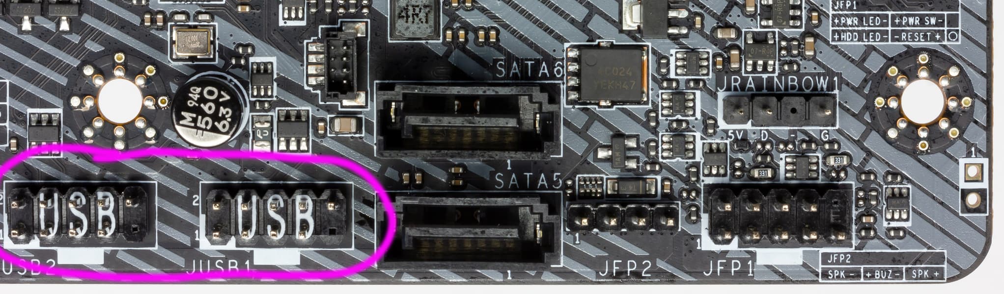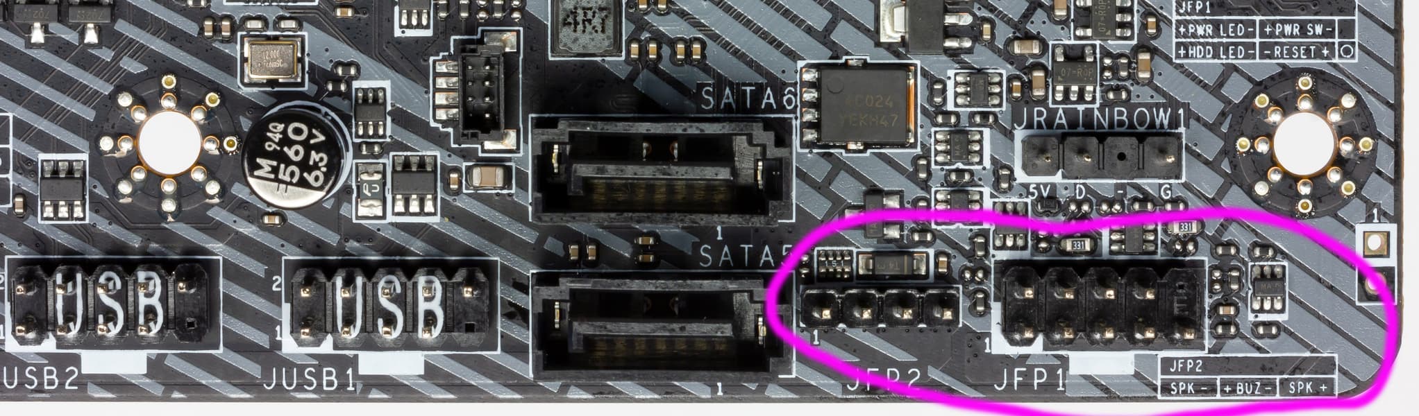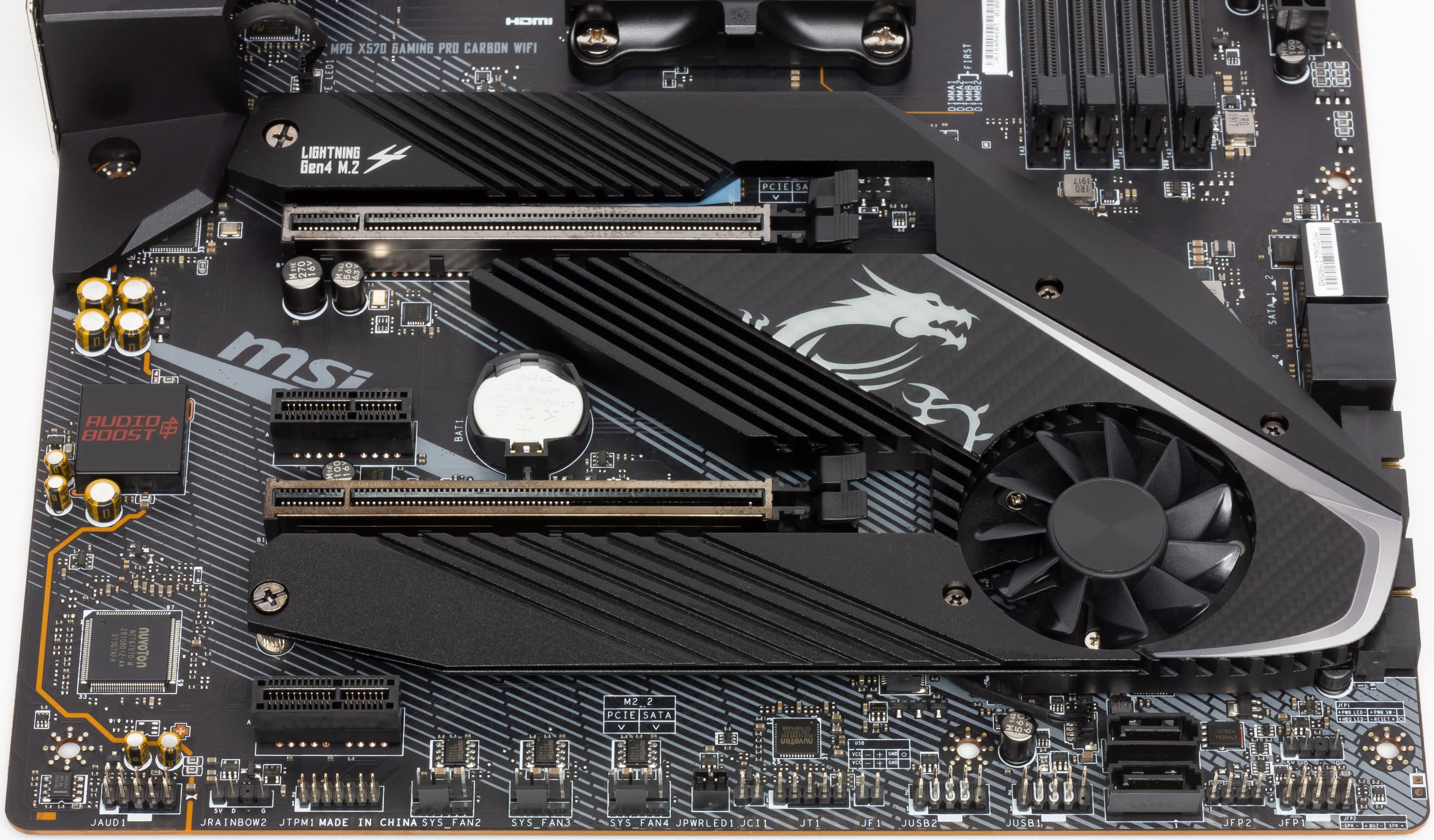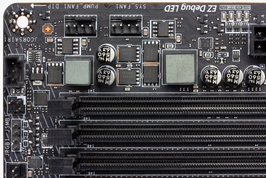 Компания MSI очень активно сотрудничает с Corsair, поэтому для их элементов подсветки есть специальный проприетарный разъем (он рядом с JRGB1).