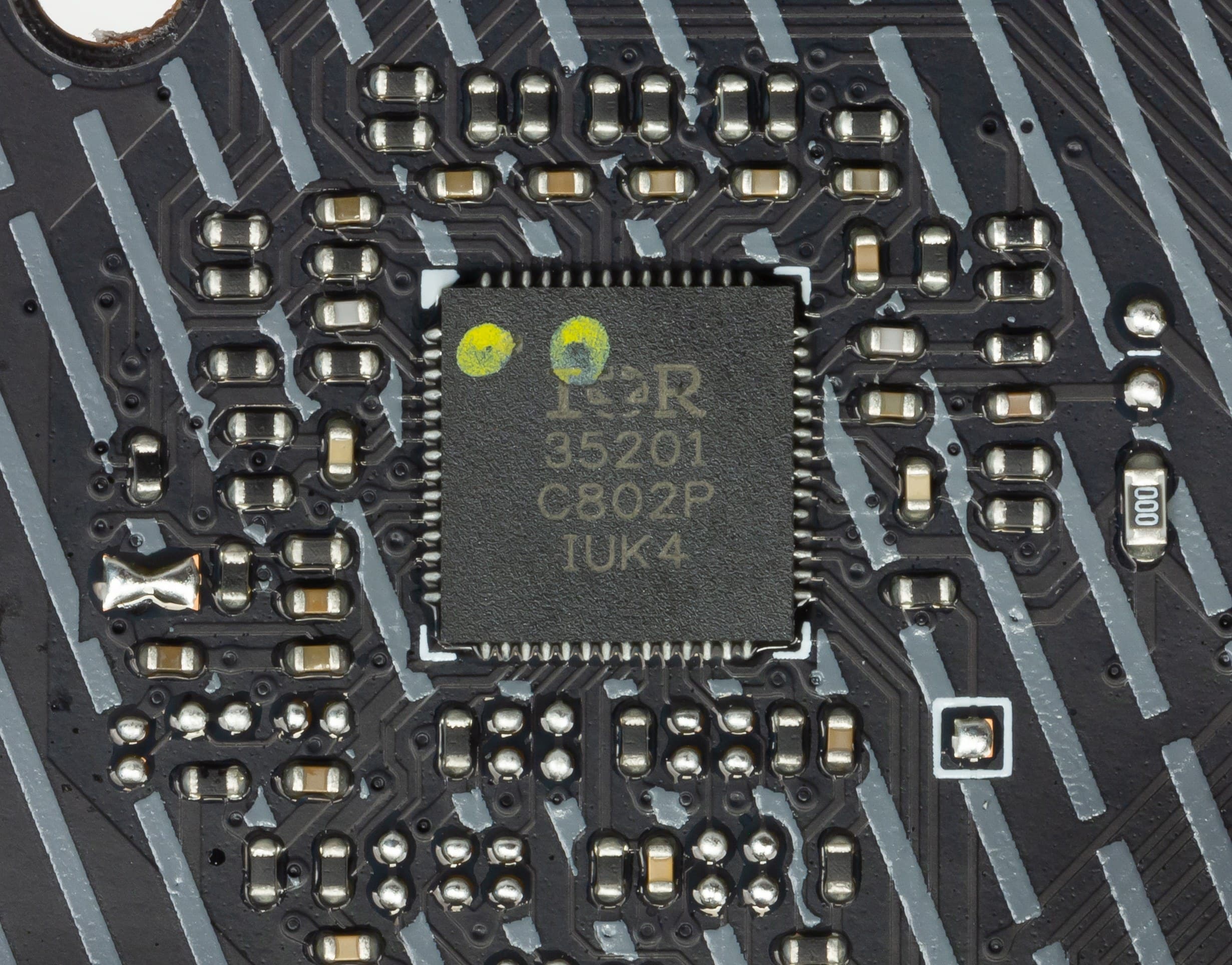 Управляет фазами цифровой контроллер IR35201 (от компании International Rectifier, которая сейчас является подразделением Infineon), а он рассчитан всего на 8 фаз максимум.