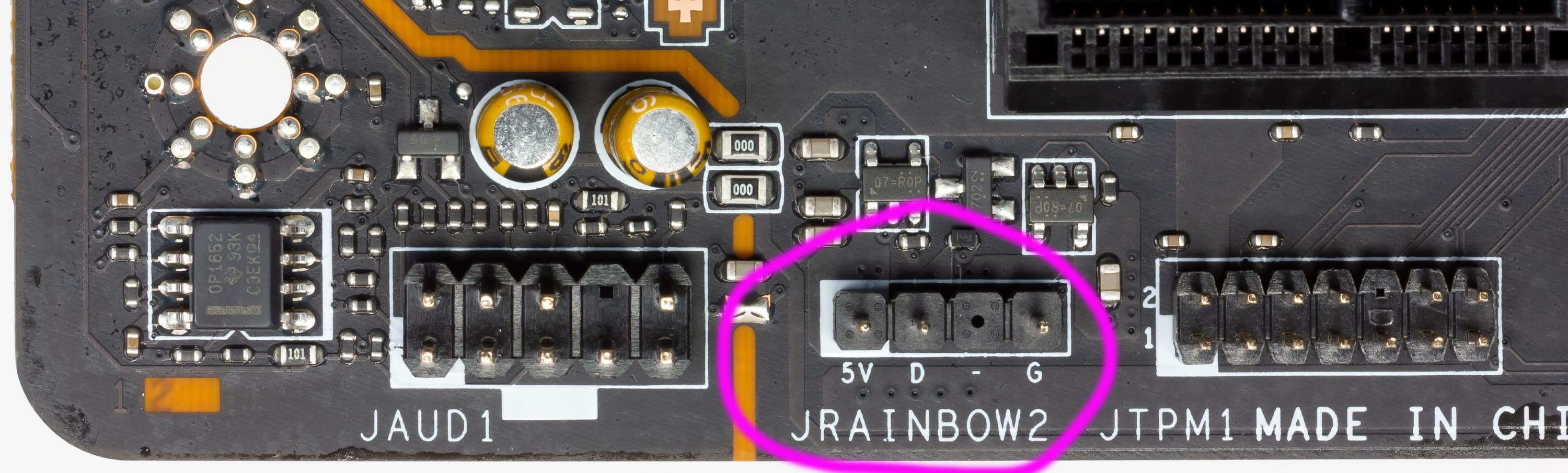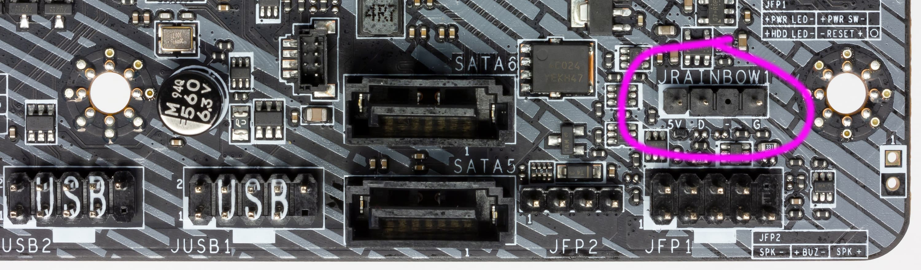 Внизу платы есть два разъема для подключения адресуемой ARGB-подсветки: