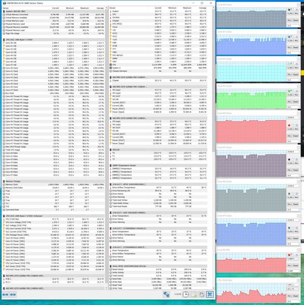 После прогона тестов получены следующие приросты производительности в 3DMark (настройки по умолчанию): Time Spy CPU Test — 2%, Fire Strike Physics Test — 3,7%, Night Raid CPU Test — 2%. Как мы видим, ну явно не густо. С одной стороны, соблюдено главное условие — стабильность, с другой стороны, программа Dragon Center выставила намного более мягкие параметры разгона: на диаграммах выше видно, что частоты работы ядер вовсе не были зафиксированы на уровне 4,3 ГГц (как отрапортовала утилита), они все равно «плавали», хоть и не падали до штатных величин, как в режиме по умолчанию. Все же разгон с помощью AMD Ryzen Master более эффективен.
