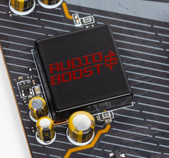 Как и практически во всех современных материнских платах, звуком заведует аудиокодек Realtek ALC1220. Он обеспечивает вывод звука по схемам до 7.1. В данном случае он прикрыт фирменным «маркетинговым» колпачком.