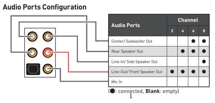 Аудиотракт вынесен на угловую часть платы, не пересекается с другими элементами, а левый и правый каналы усилителя разведены по разным слоям печатной платы. Все аудиоразъемы имеют позолоченное покрытие, однако не сохранена привычная цветовая окраска разъемов (которая неплохо помогает подключать нужные штекеры без вглядывания в их наименование). Так что, вот такая памятка может пригодиться.