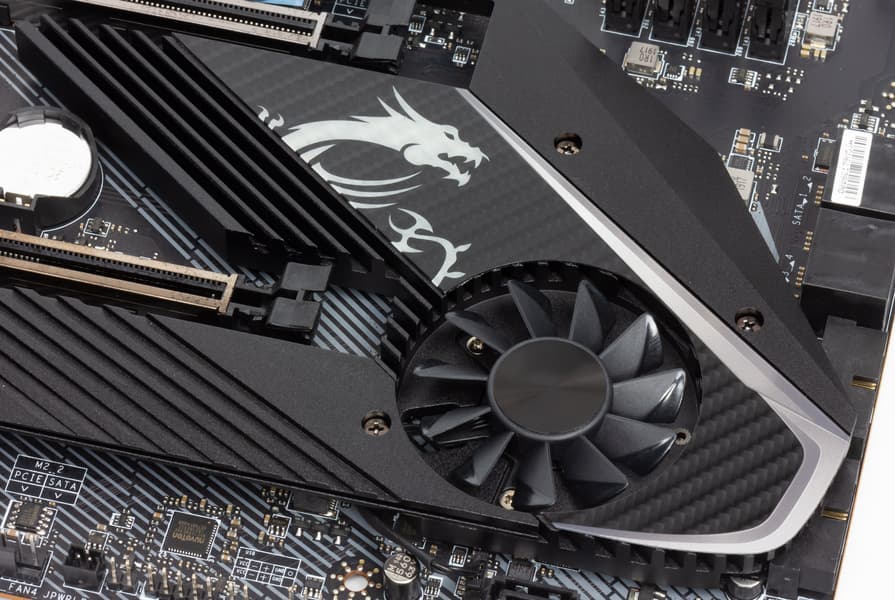 Разработчики из MSI также решили установить небольшой вентилятор на X570, однако задали режим его включения при нагреве чипсета больше 70 градусов. Если нагрев меньше, то вентилятор выключен.