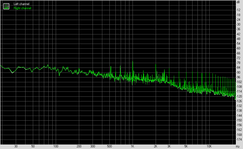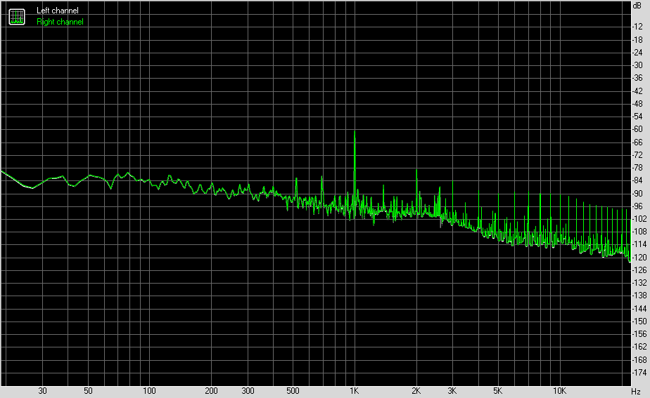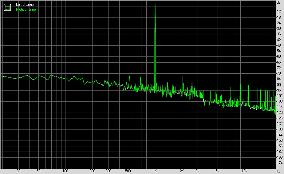 Для тестирования выходного звукового тракта, предназначенного для подключения наушников или внешней акустики, мы использовали внешнюю звуковую карту Creative E-MU 0202 USB в сочетании с утилитой RightMark Audio Analyzer 6.4.5. Тестирование проводилось для режима стерео, 24-бит/44,1 кГц. По результатам тестирования аудиотракт на плате получил оценку «Хорошо».