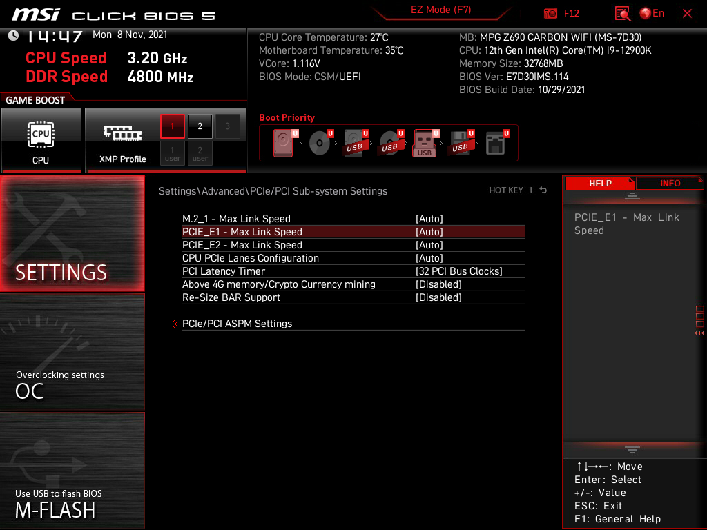Разумеется, MSI MPG Z690 Carbon WiFi предлагает широкие возможности для любителей разгона в виде множества настроек в BIOS Setup и фирменных утилитах — лишь бы кулер справлялся.