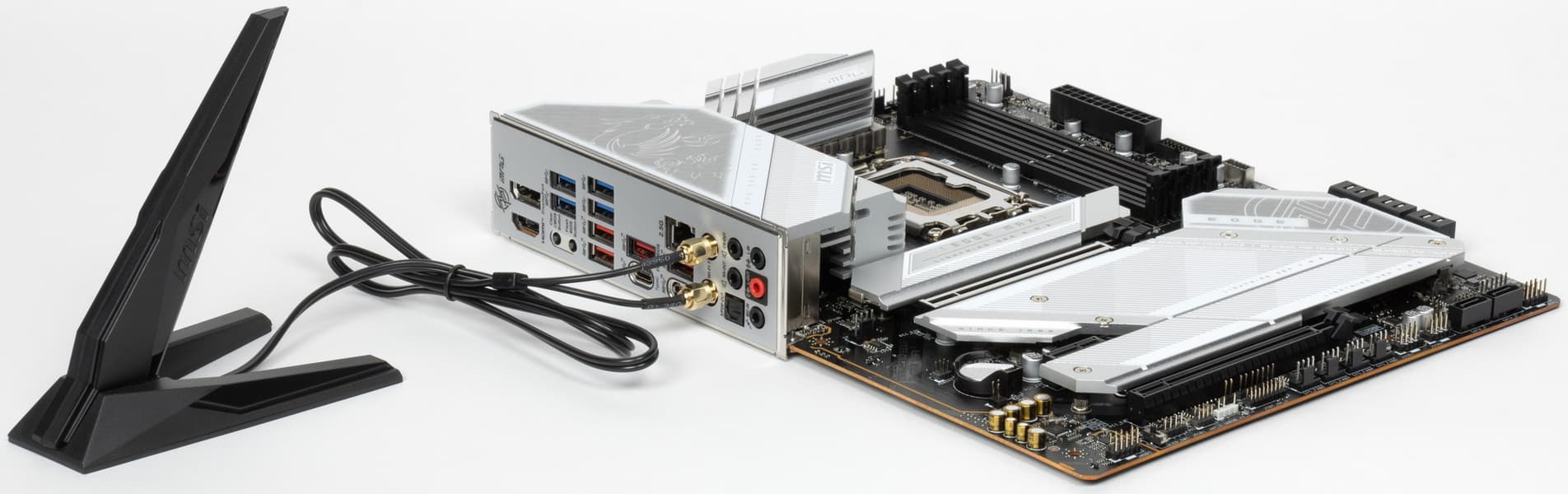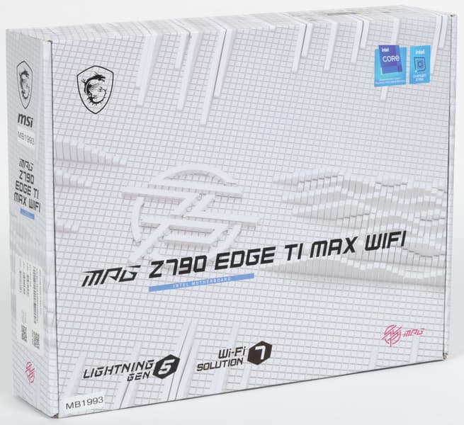 MSI MPG Z790 Edge TI Max WiFi поставляется в стандартной коробке. Комплект размещен под платой в отдельном отсеке.