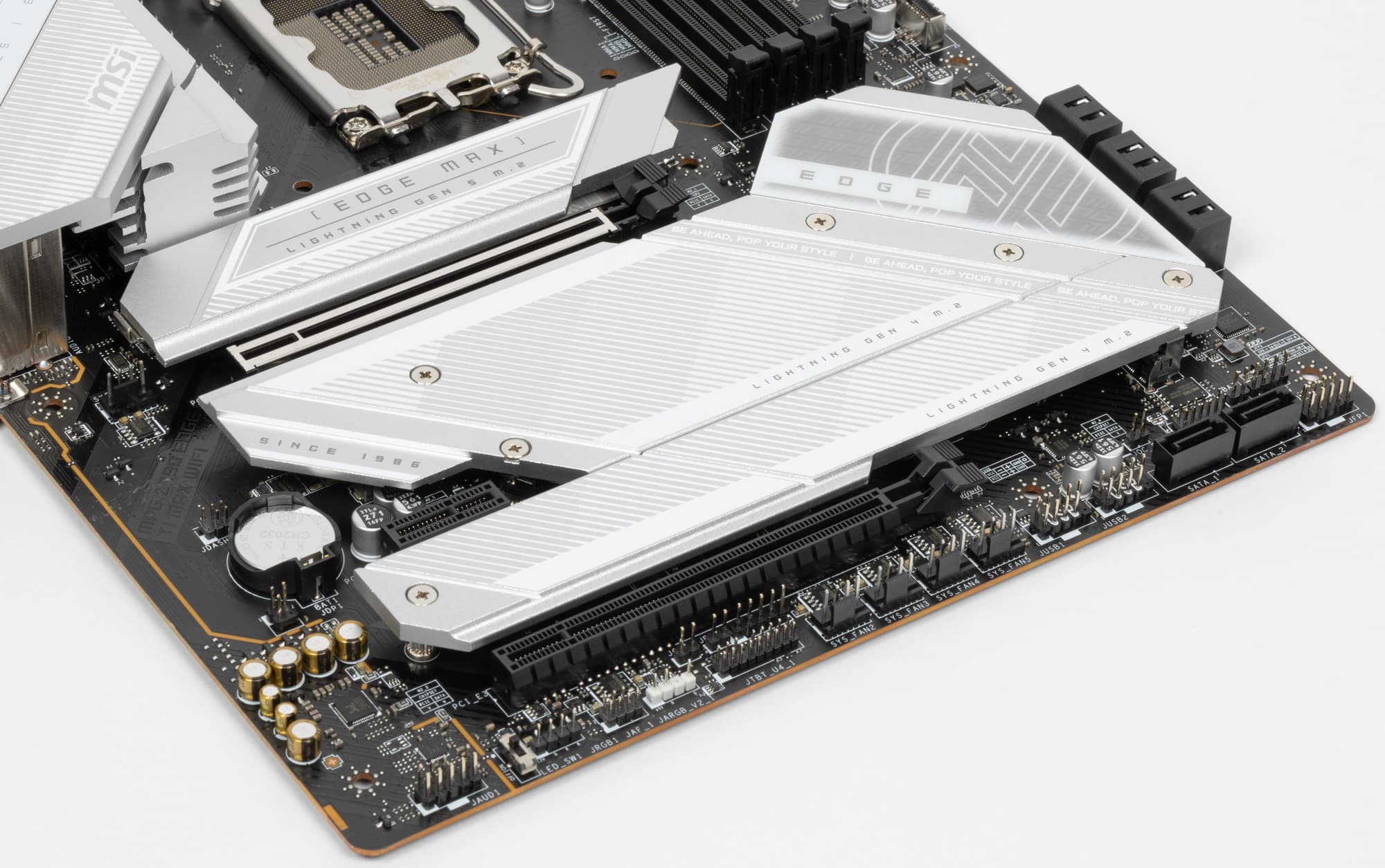 Как я уже упоминал ранее, M.2 слоты также имеют радиаторы: у верхнего — свой персональный радиатор, у М.2_2 и М.2_5 – общий радиатор с Z790. Также и М.2_4 и М.2_3 имеют свой общий радиатор.