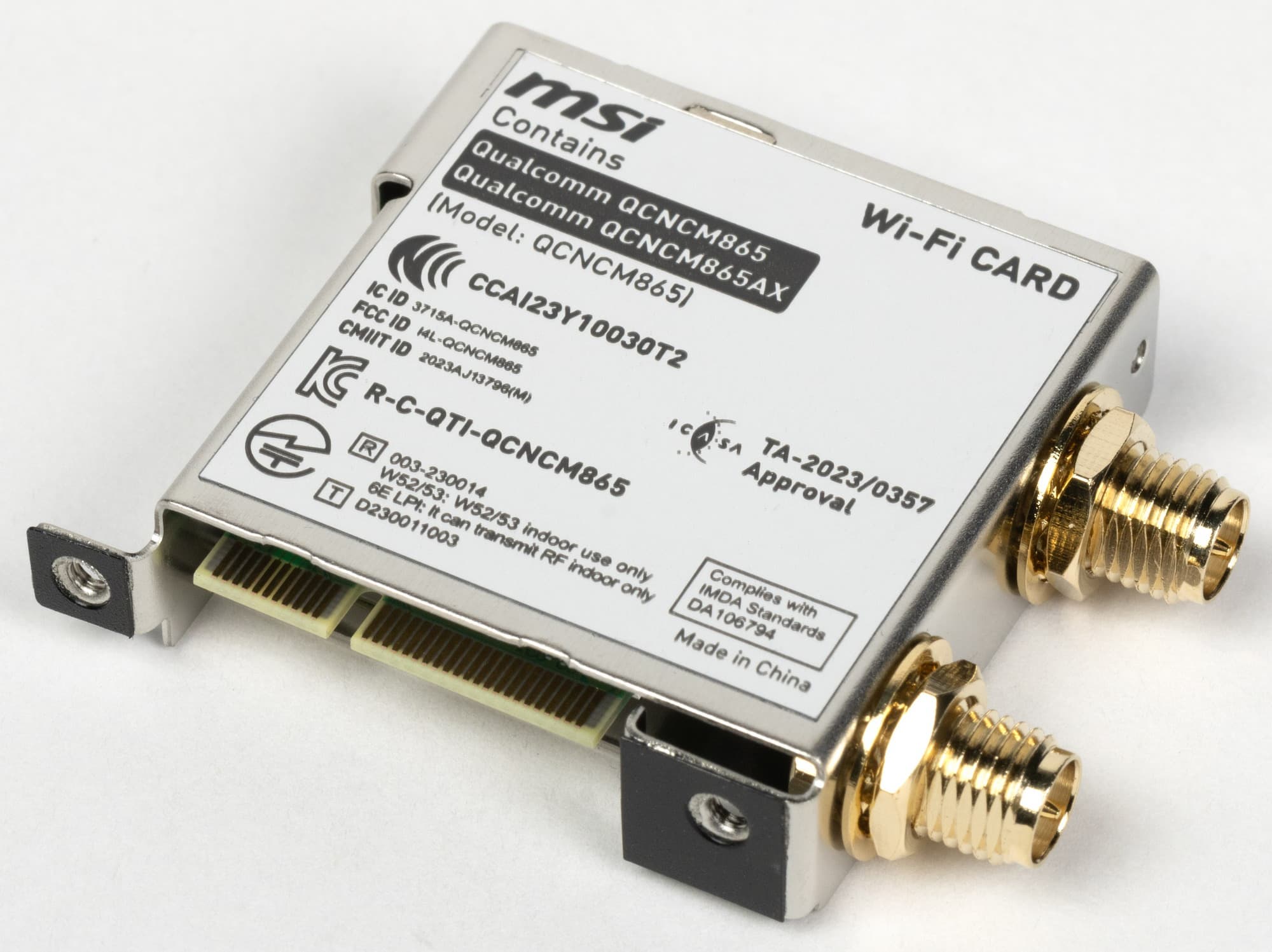 Имеется и комплексный беспроводной адаптер на контроллере Qualcomm QCNCM865, через который реализованы Wi-Fi 7 (802.11a/b/g/n/ac/ax/be, 2,4/5/6 ГГц) и Bluetooth 5.4. Он установлен в слот M.2 (E-key), и его разъемы для привинчивания выносных антенн выведены на заднюю панель.