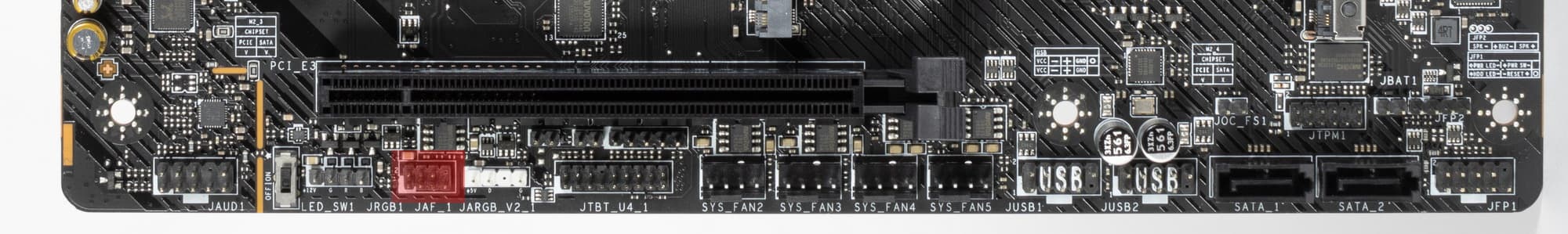 Да, в данном случае ради возможности установки накопителя SSD с интерфейсом PCIe 5.0 инженеры пошли на урезание линий у первого слота PCIe. Жалко, что оставшиеся 4 линии PCIe 4.0 от процессора так и не задействованы.
