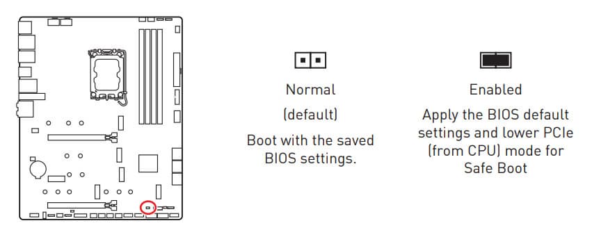 Теперь посмотрим выше на то, как работают процессоры в данной конфигурации. У CPU 14/12/13-го поколений всего 20 линий PCIe, 4 из них версии PCIe 4.0 отведены на порт М.2, однако в данной версии матплаты они не используются. Оставшиеся 16 линий PCIe 5.0 идут на слот PCIe x16_1 (PCI_E1) и на слот M.2_1. Поэтому имеются варианты деления ресурсов между слотами: