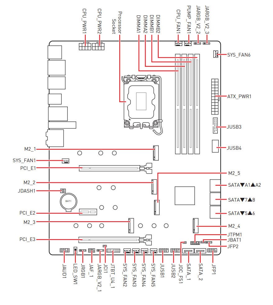 | Прочие внутренние элементы | 24-контактный разъем питания ATX 2 8-контактный разъем питания EPS12V 1 слот M.2 (E-key), занят адаптером беспроводных сетей 1 разъем для подключения порта USB 3.2 Gen2 Type-C 1 разъем для подключения 2 портов USB 3.2 Gen1 2 разъема 4 портов USB 2.0 8 разъемов для подключения 4-контактных вентиляторов и помп ЖСО 4 разъема для подключения адаптеров подсветки (1 разъем неадресуемой RGB-ленты, 3 разъема адресуемой ARGB-ленты) 1 разъем для дискретной карты Intel Thunderbolt 1 разъем для TPM 2 разъема для подключения адаптера управления с передней панели корпуса 1 разъем OC_FS1 для запуска в защищенном режиме 1 переключатель LED_SW для отключения подсветки 1 разъем для Tuning Controller |