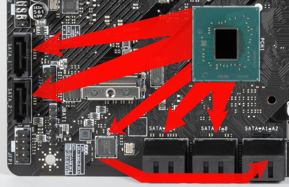 Остальные 2 порта SATA A1/A2 реализованы через ASM1061 от ASMedia. Они не поддерживают RAID.