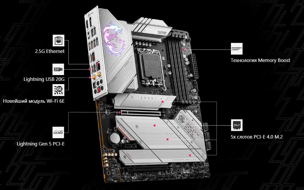 Материнская плата MSI MPG Z790 Edge WiFi DDR4 — представитель почти флагманской серии MPG с примерной стоимостью в районе 35-40 тысяч рублей.