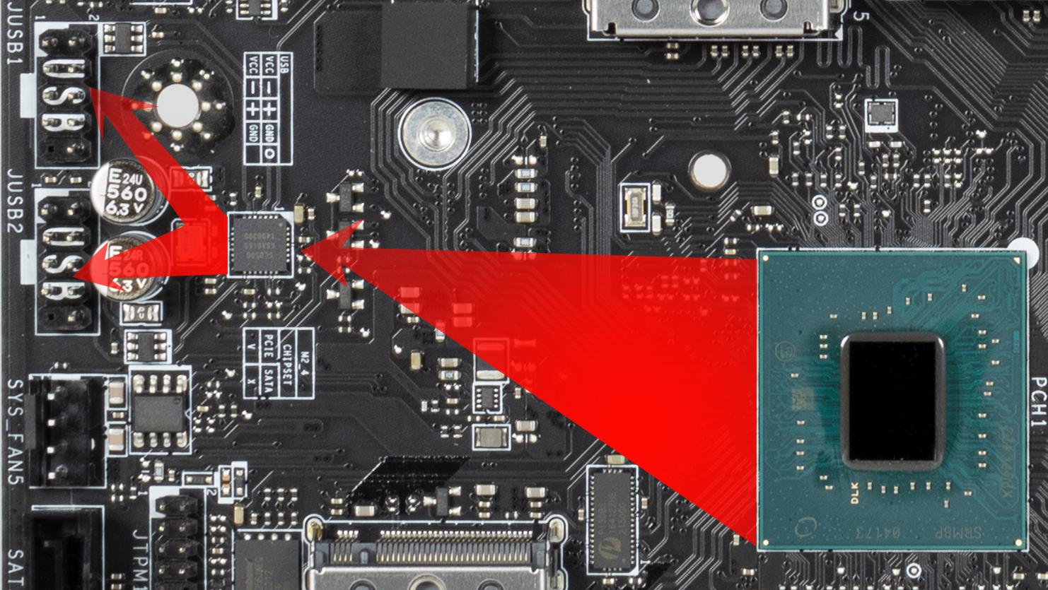 28 линий PCIe оказались занятыми (20 PCIe 4.0 + 8 PCIe 3.0). В чипсете Z790 связь с аудиокодеками идет через USB-порт. Также один USB 2.0 расходуется на поддержку BT (при наличии слота M.2 (key E) и контроллеры GL3523, GL850G для своих нужд использует сигнальные линии USB 2.0 Детально об этом ниже в разделе USB-портов.