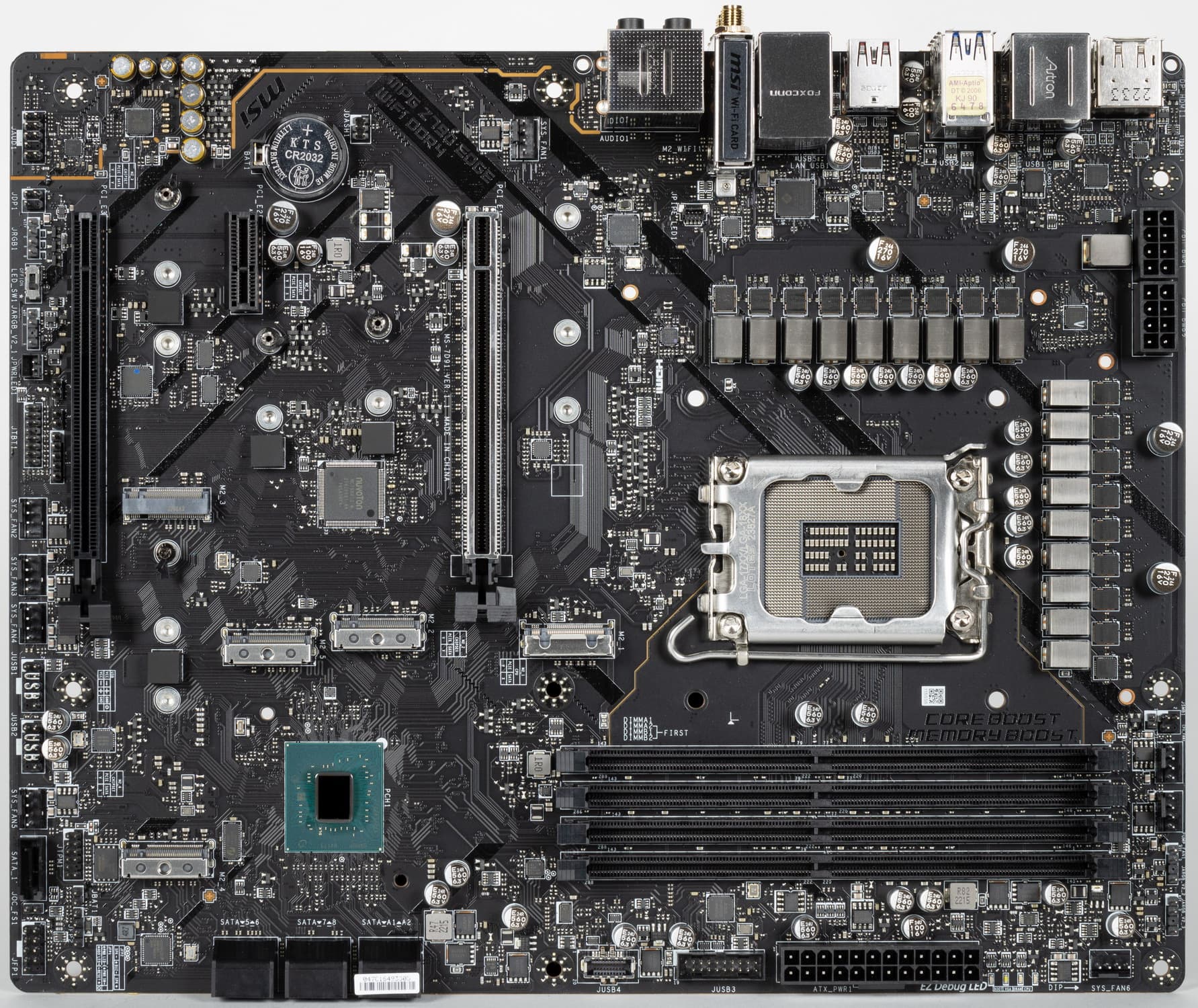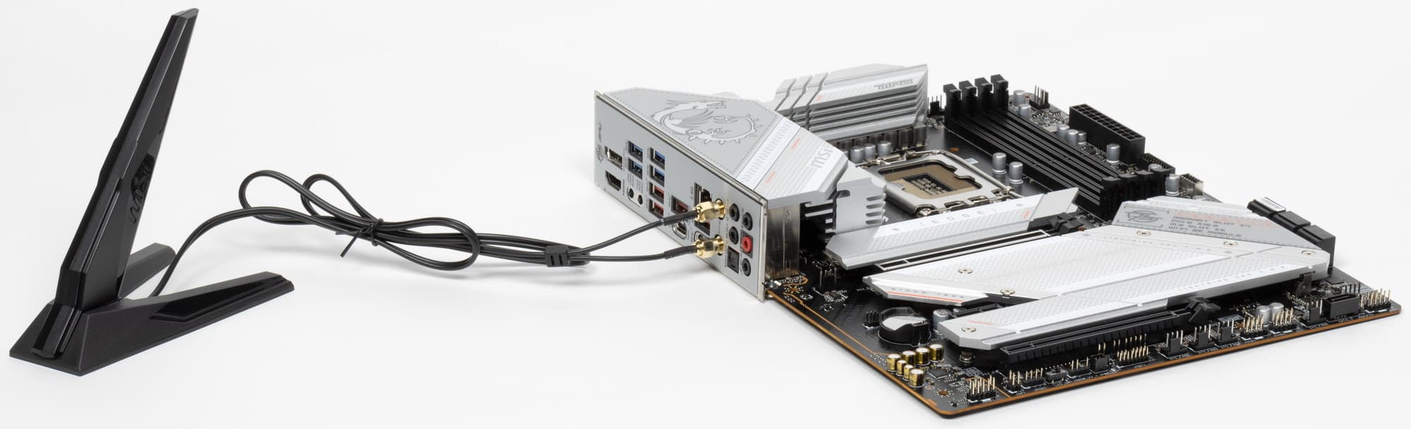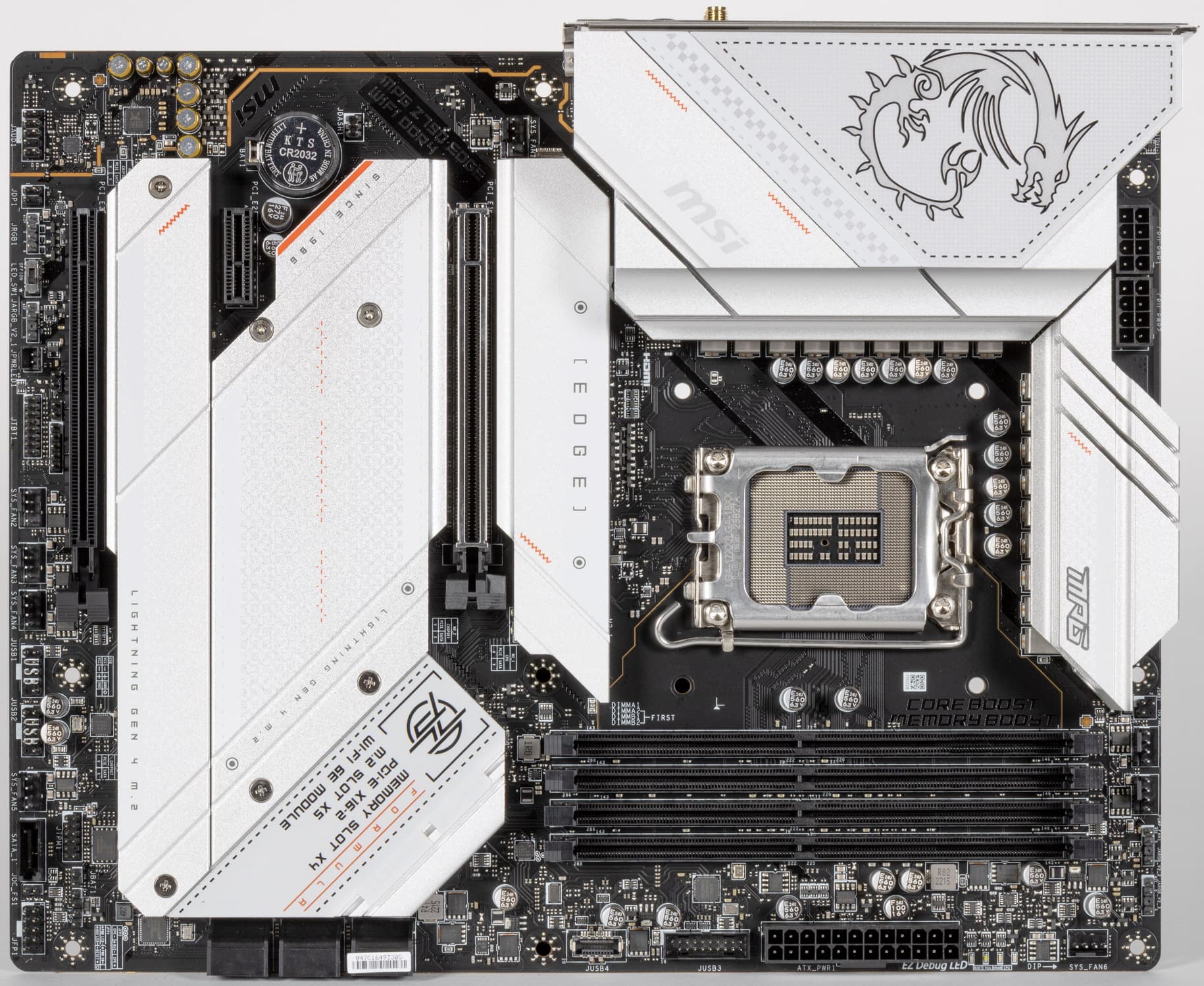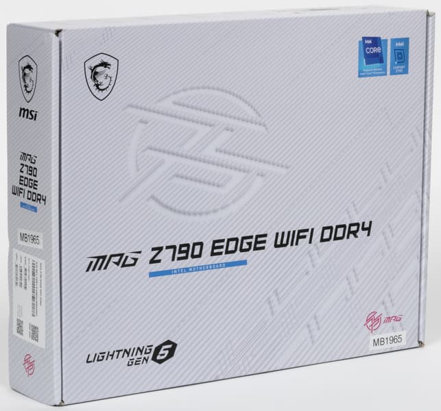 MSI MPG Z790 Edge WiFi DDR4 поставляется в стандартной коробке. Комплект размещен под платой в отдельном отсеке.