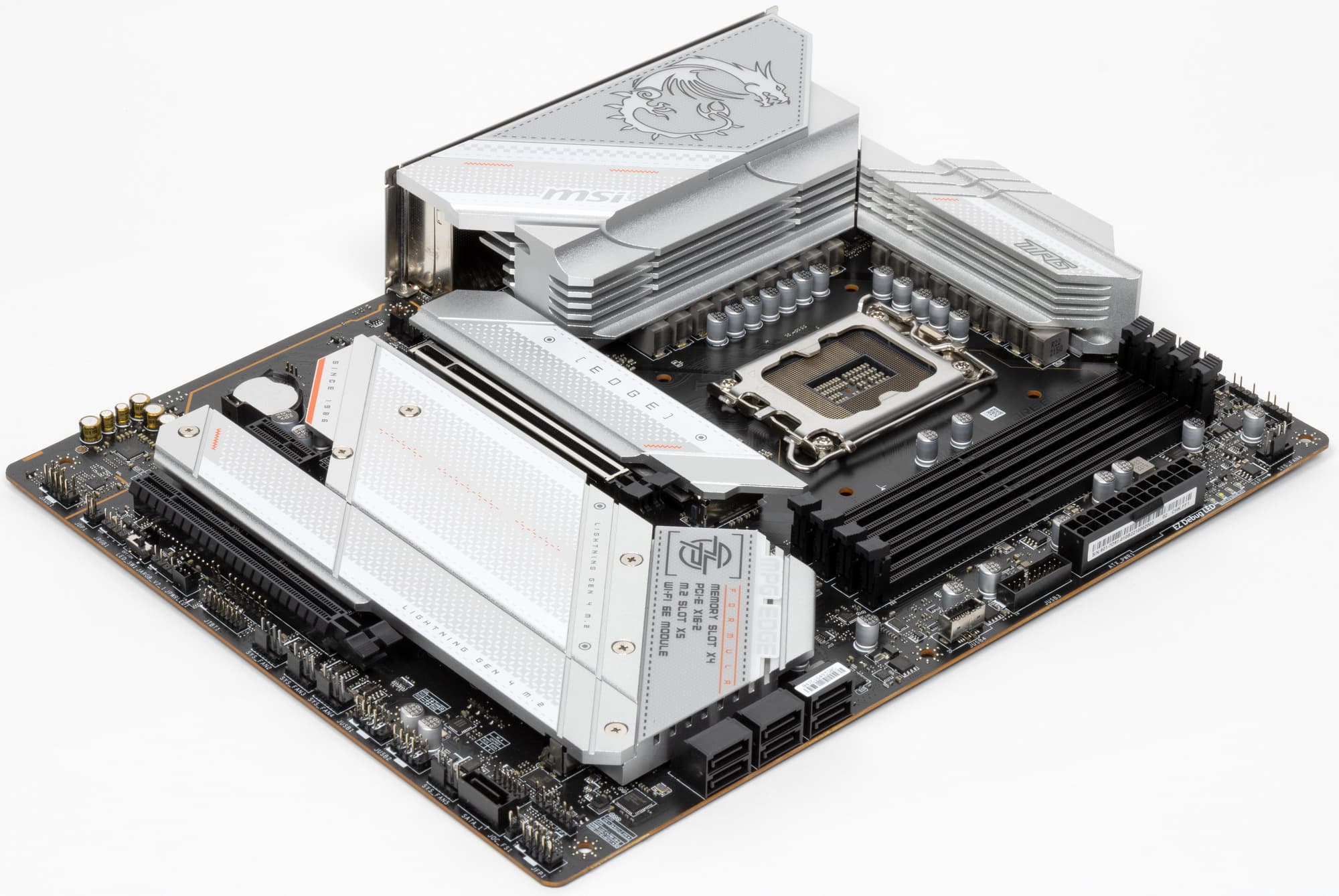Форм-фактор ATX имеет размеры до 305×244 мм, а E-ATX — до 305×330 мм. Материнская плата MSI MPG Z790 Edge WiFi DDR4 имеет размеры 305×244 мм, поэтому выполнена в форм-факторе ATX, и на ней имеются 9 монтажных отверстий для установки в корпус.