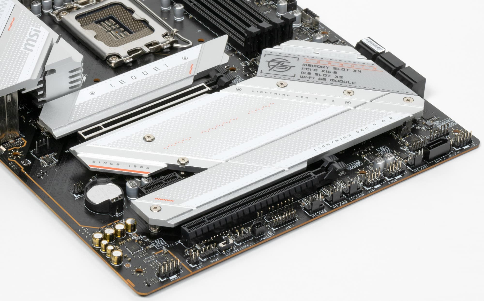 Как я уже упоминал ранее, M.2 слоты также имеют радиаторы: у верхнего — свой персональный радиатор, у М.2_2 и М.2_5 – общий радиатор с Z790. Также и М.2_4 и М.2_3 имеют свой общий радиатор.