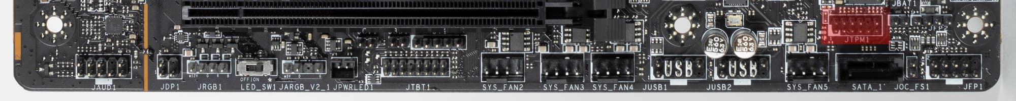 | Прочие внутренние элементы | 24-контактный разъем питания ATX 2 8-контактный разъем питания EPS12V 1 слот M.2 (E-key), занят адаптером беспроводных сетей 1 разъем для подключения порта USB 3.2 Gen2 Type-C 1 разъем для подключения 2 портов USB 3.2 Gen1 2 разъема 4 портов USB 2.0 8 разъемов для подключения 4-контактных вентиляторов и помп ЖСО 3 разъема для подключения адаптеров подсветки (1 разъем неадресуемой RGB-ленты, 2 разъема адресуемой ARGB-ленты) 1 разъем для дискретной карты Intel Thunderbolt 1 разъем для TPM 1 разъем для подключения адаптера управления с передней панели корпуса 1 разъем для Tuning Controller |