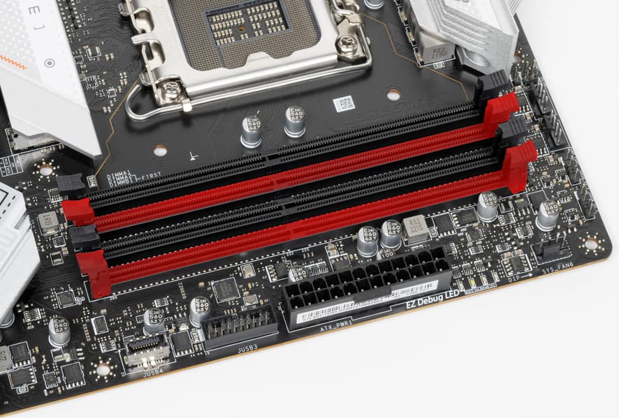 Для установки модулей памяти на плате MSI имеется четыре DIMM-слота (для работы памяти в Dual Channel в случае использования всего 2 модулей их следует устанавливать в А2 и B2. Плата поддерживает небуферизованную память DDR4 (non-EСС), а максимальный объем памяти составляет 128 ГБ. Поддерживаются профили XMP.