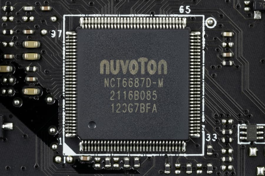 Материнская плата оснащена средствами связи хорошо. Имеется скоростной Ethernet-контроллер Intel i225-V, способный работать по стандарту 2,5 Гбит/с.