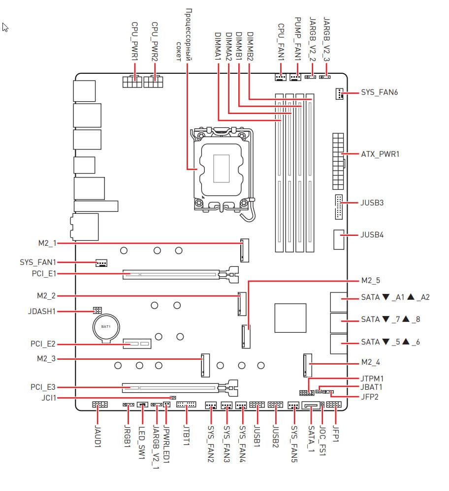 | Разъемы для накопителей | 7 × SATA 6 Гбит/с (Z690+ASM1061) 1 × M.2 (M.2_1,CPU, PCIe 4.0 x4 для устройств формата 2260/2280/22110) 1 × M.2 (M.2_2,Z790, PCIe 4.0 x4 для устройств формата 2260/2280) 1 × M.2 (M.2_5,Z790, PCIe 4.0 x4 для устройств формата 2260/2280) 1 × M.2 (M.2_3,Z790, PCIe 4.0 x4/SATA для устройств формата 2242/2260/2280) 1 × M.2 (M.2_4,Z790, PCIe 4.0 x4 для устройств формата 2242/2260/2280) |