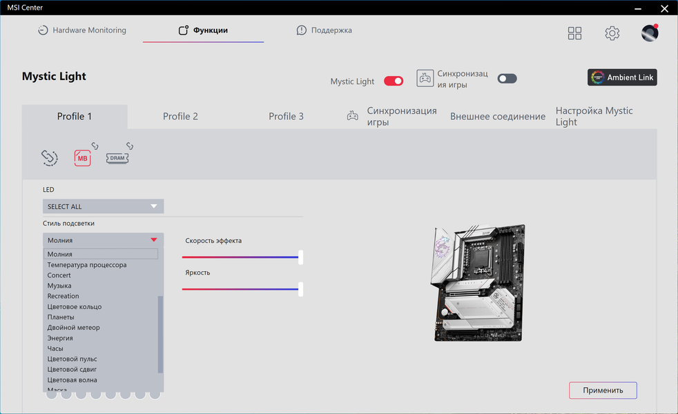 Формально имеется поддержка памяти DDR4 до 3200 МГц, однако всем хорошо известно, и производители материнских плат это активно рекламируют: через XMP-профили сейчас можно использовать частоты до 5000 и выше МГц. В частности данная плата поддерживает частоты до 5333 МГц (DDR4).