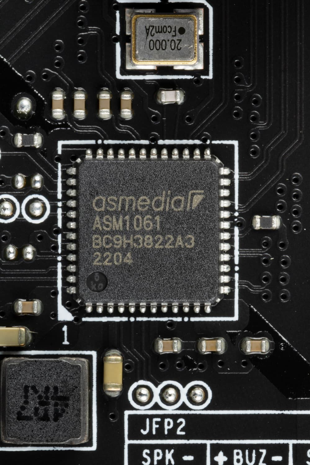 Остальные 2 порта SATA A1/A2 реализованы через ASM1061 от ASMedia.