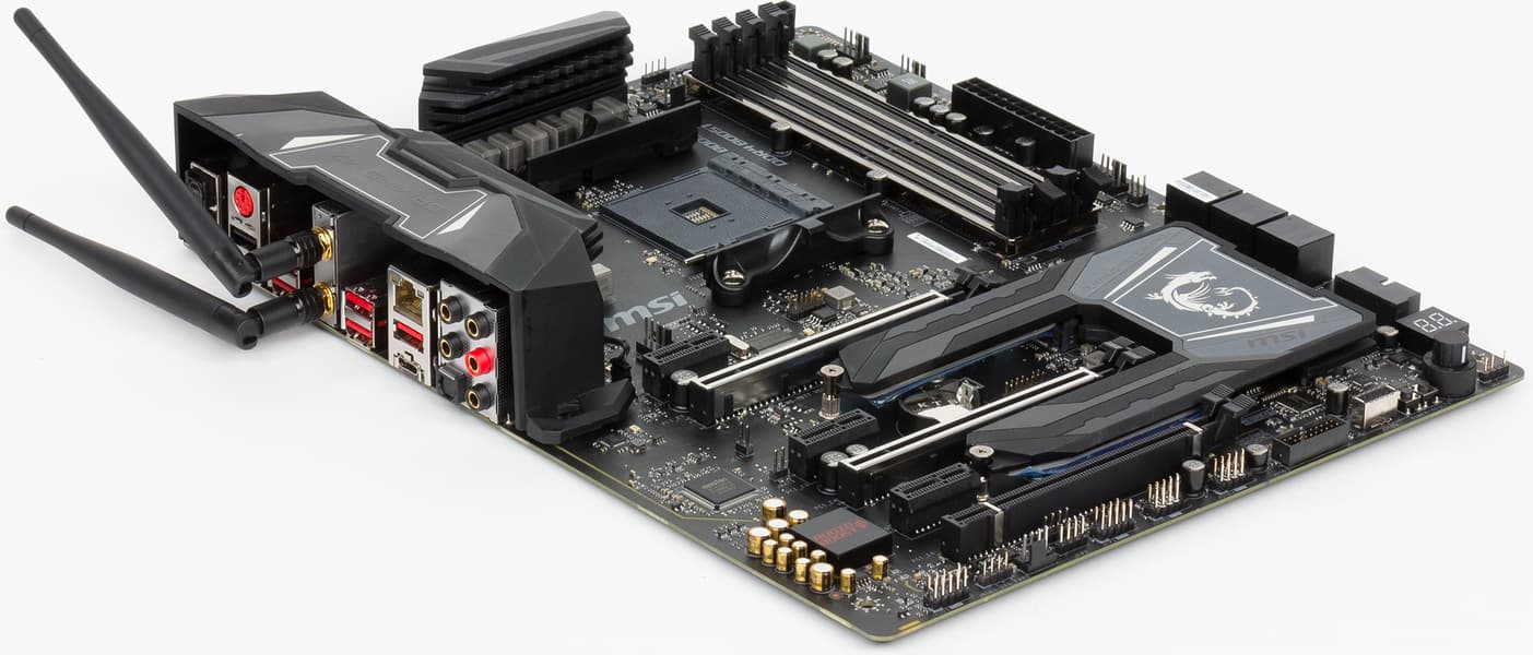 Хотя первые APU для АМ4 появились почти два года назад, а новые APU Ryzen оказались очень удачными, топовые платы для этой платформы нередко обходятся вообще без видеоразъемов. Основная причина — нацеленность APU на бюджетный сегмент, что слабо совместимо с идеей покупки дорогой платы. К тому же, если Intel встраивает GPU во все процессоры для LGA1151, у AMD модели «с графикой» изначально ограничены по количеству ядер и другим техническим параметрам. В общем, критиковать инженеров MSI за отсутствие на этой плате видеоразъемов мы не будем — как уже неоднократно было сказано, APU имеет смысл использовать совсем с другими платами.