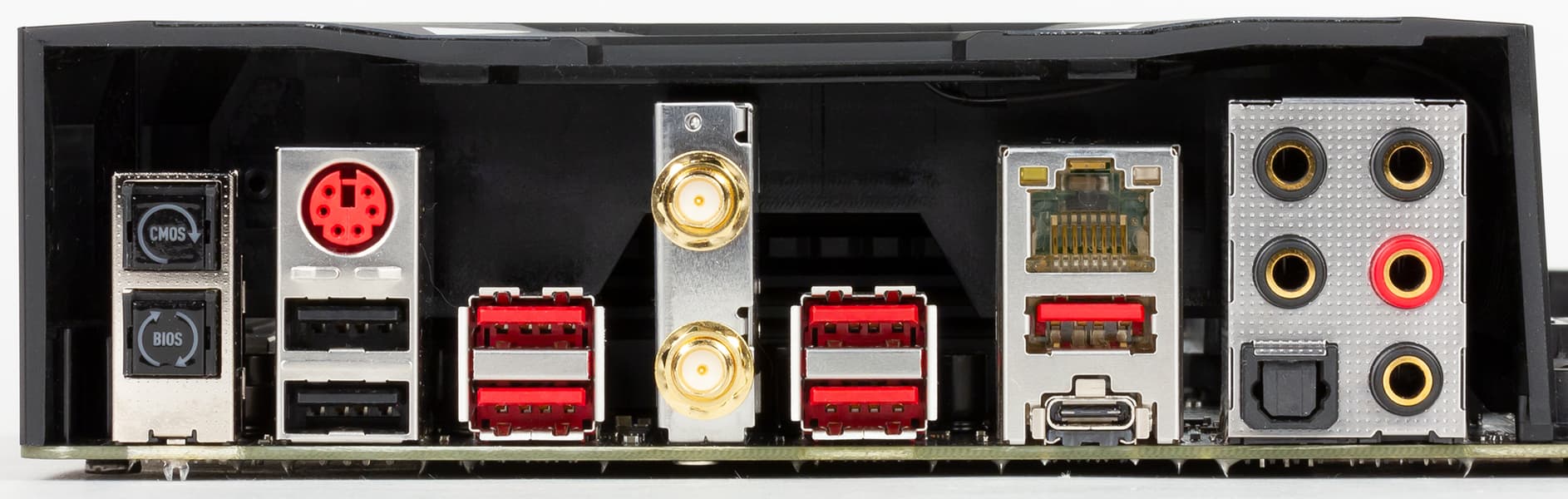 | Разъемы на задней панели | 2 × USB 3.1 (1 × Type-C) 4 × USB 3.0 2 × USB 2.0 1 × RJ-45 1 × PS/2 1 × S/PDIF (оптический, выход) 5 аудиоразъемов типа миниджек |