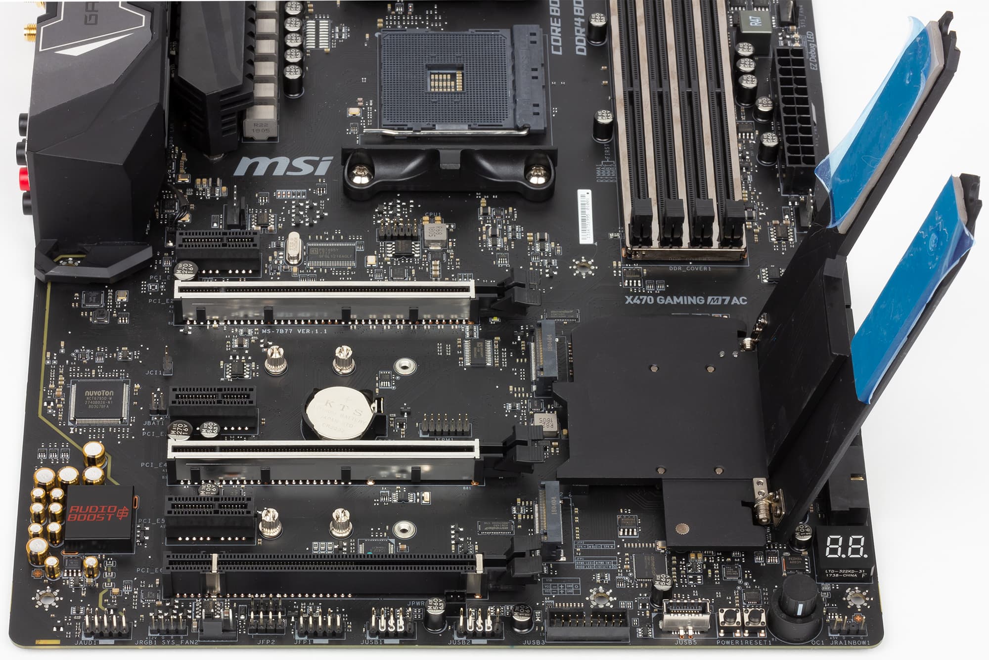 Формально плата также совместима и с APU — как «старыми» (семейства Bristol Ridge), так и «новыми» (Ryzen Raven Ridge), — что справедливо для всех решений под АМ4. Однако, как уже не раз было сказано, их использование совместно с «полноразмерными» платами на топовых чипсетах нецелесообразно. Особенно если говорить о старших моделях плат, лишенных видеовыходов, что справедливо и в отношении нашей героини. Последнее в любом случае заставляет использовать дискретную видеокарту, «лишившись» возможности использовать второй слот PCIe 3.0 x16 (и ограничив первый всего восемью линиями). В общем, формально совместимость есть, но на практике ее нет — лучше ориентироваться как минимум на шестиядерные процессоры Ryzen 5, а не на APU.