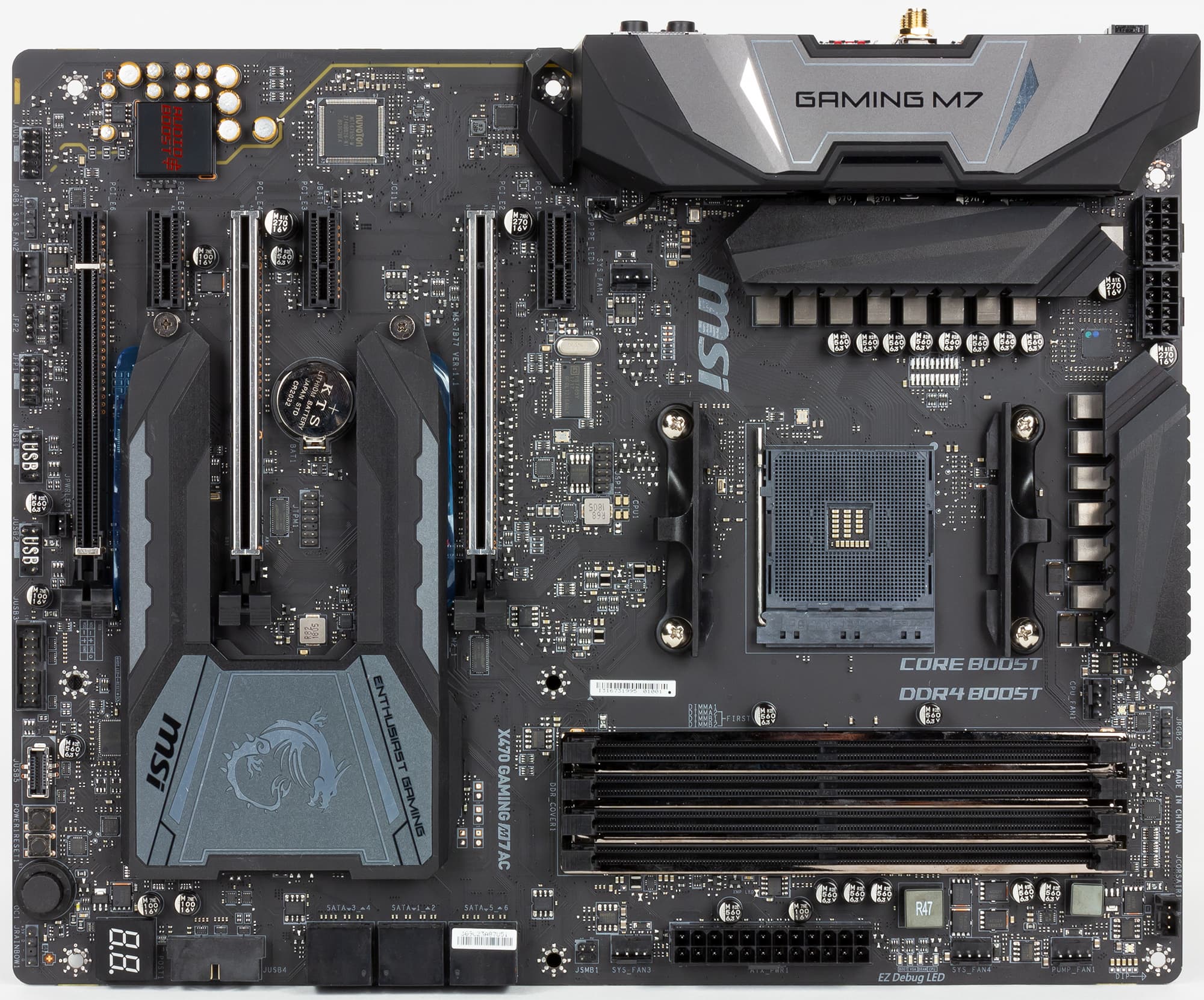 Мы уже рассмотрели несколько плат для платформы АМ4 на базе чипсетов новой «четырехсотой» серии (X470 и B450), но все они относились к ассортименту Asus или Gigabyte. Сегодня же мы решили посмотреть, что может предложить в этом сегменте компания MSI. Благо и выбрать несложно: это единственная модель в семействе «Enthusiast Gaming» на базе X470. Да и вообще в этом (топовом для MSI) семействе продуктов под АМ4 всего три платы: X470 Gaming M7 AC да две более старых модели на базе X370. Таким образом, именно нашу сегодняшнюю героиню можно считать лучшим предложением MSI для процессоров AMD Ryzen.