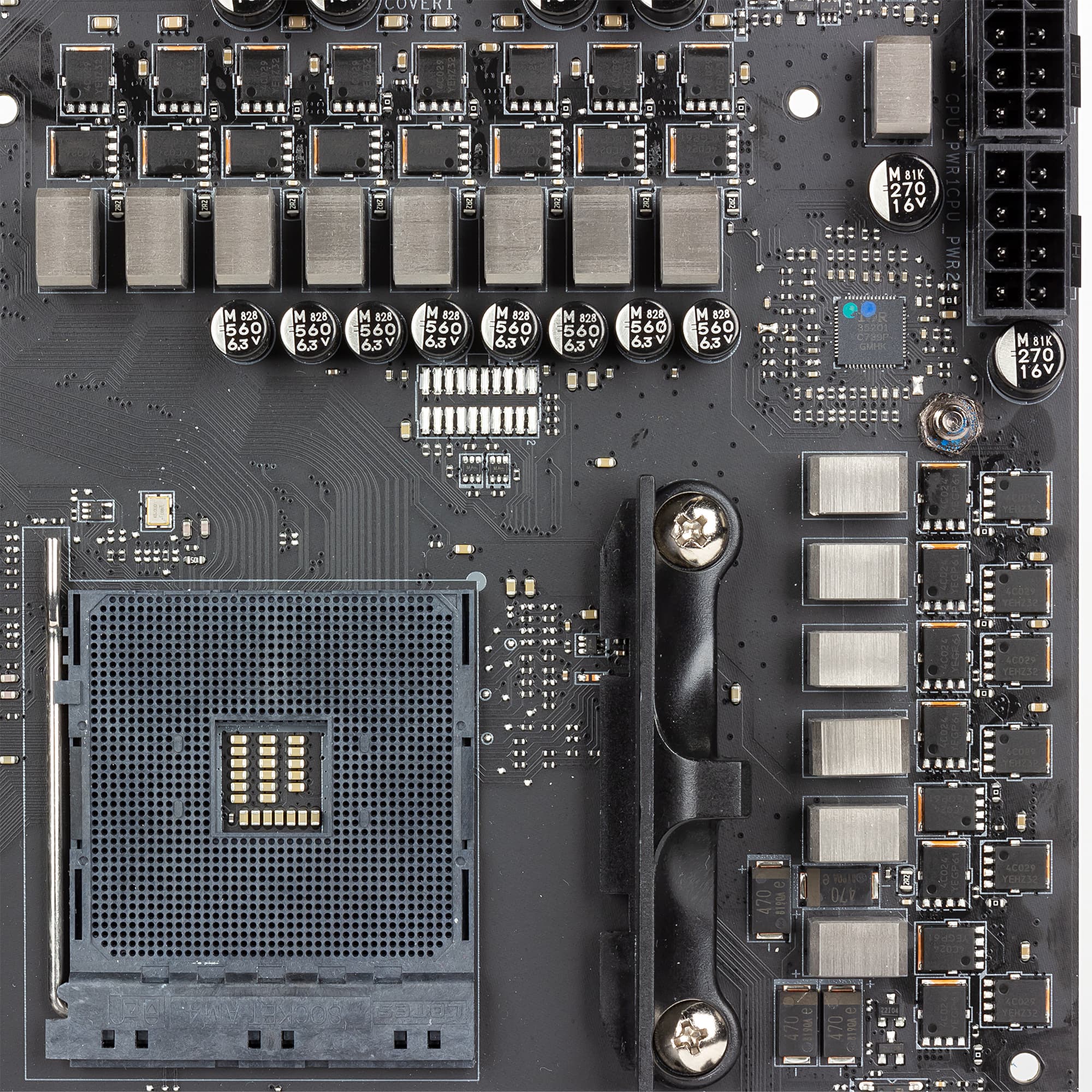 Большинство плат для платформы АМ4 обходится 24-контактным и 8-контактным разъемами для подключения блока питания. Эта — тоже: хотя 8-контактных разъемов здесь два, второй можно не использовать. Вообще говоря, даже системы на Ryzen Threadripper 2990WX в штатном режиме отлично обходятся 24-контактным и 4-контактным разъемами, несмотря на потребление в 350 Вт, так что пляски вокруг качества системы питания для более простых платформ имеют исключительно эстетическую ценность :)