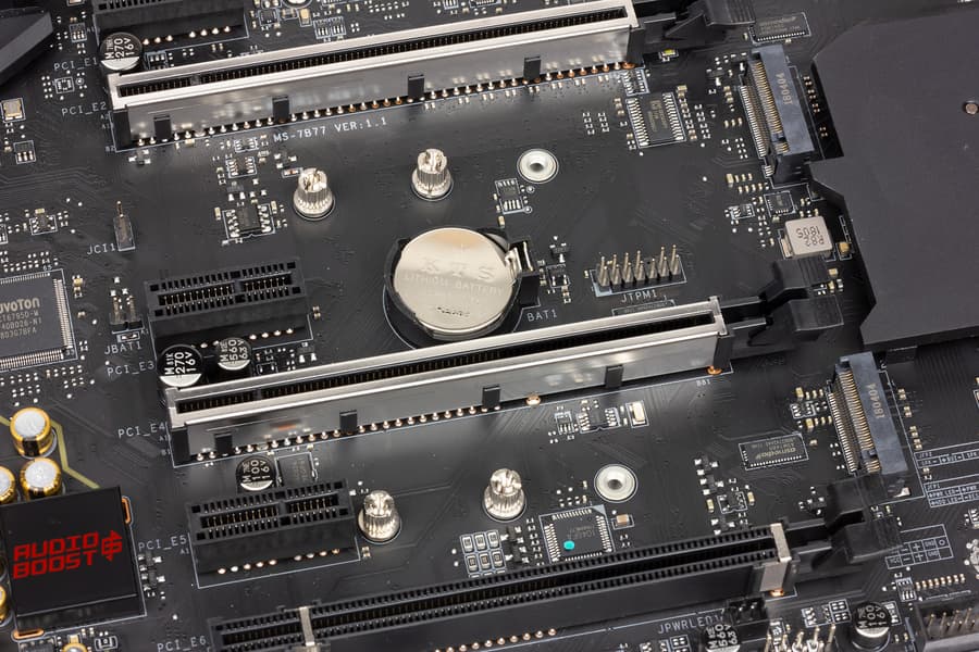 Для установки видеокарт, плат расширения и накопителей на плате имеется три слота с форм-фактором PCI Express x16, три слота PCI Express 2.0 x1, а также три разъема M.2. Два разъема M.2 предназначены для установки твердотельных накопителей типоразмера 2242/2260/2280, оба поддерживают устройства с интерфейсом PCIe, но по-разному. «Первичный» разъем вопросов не вызывает: он использует встроенный в процессор контроллер PCIe 3.0 x4, предназначенный специально для подключения NVMe-накопителей. Второй же разъем подключается к чипсету, так что ограничен режимом PCIe 2.0 x4, причем при установке в него накопителя с интерфейсом PCIe отключается «длинный» чипсетный слот PCIe 2.0 x4 (в формате х16). Если же установить в этот разъем накопитель с SATA-интерфейсом (коих в формате M.2 тоже много), отключится третий порт SATA на плате. Таким образом, этот разъем разве что повышает удобство установки накопителя, представляя собой, по сути, «встроенный» переходник, но не добавляет никаких новых возможностей. Отметим, что (по неизвестной прогрессивной науке причине) «процессорный» M.2 вообще не поддерживает SATA-накопители, хотя и мог бы.
