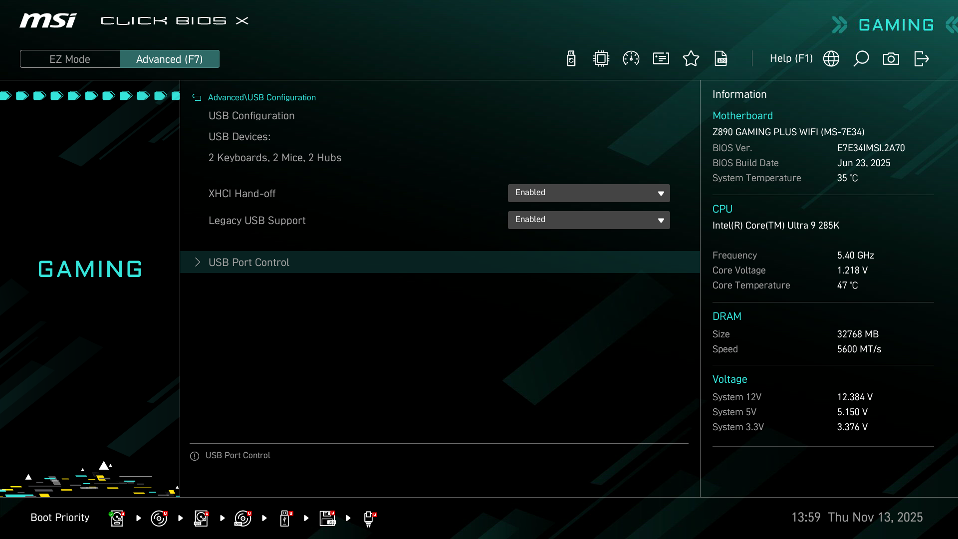 | USB-порты | 4 × USB 2.0: 2 внутренних разъема на 4 порта (черный) (GL850G) 4 × USB 2.0: 4 порта Type-A (черные) (GL850G) 4 × USB 3.2 Gen1: 2 внутренних разъема на 4 порта (Z890) 2 × USB 3.2 Gen1: 2 порта Type-A (синие) (Z890) 1 × USB 3.2 Gen2: 1 порт Type-A (красный) (Z890) 1 × USB 3.2 Gen2: 1 порт Type-C (Z890) 1 × USB 3.2 Gen2x2: внутренний разъем Type-C (Z890) 1 × USB4: 1 порта Type-C (CPU, Thunderbolt4) |