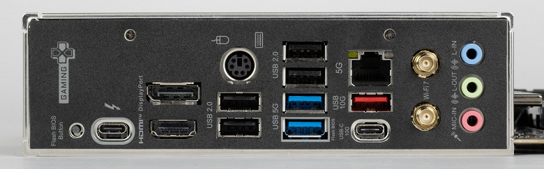 - 1 порт USB4: реализован через Thunderbolt 4, встроенный в CPU и представлены портом Type-C на задней панели;