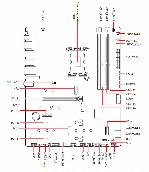 - Слот M.2 (M.2_4) (4 линии PCIe 4.0);