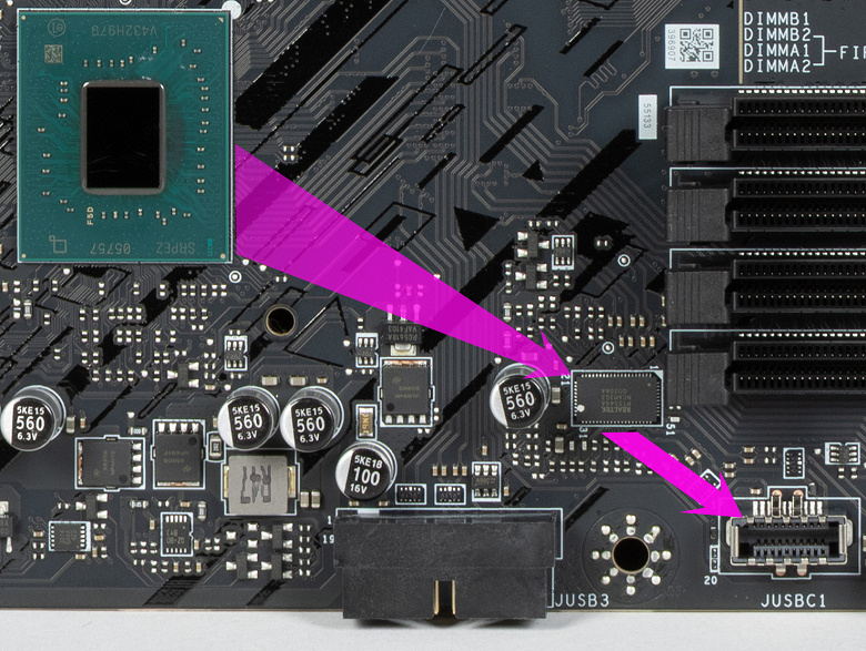 Для устойчивой скоростной передачи по протоколам USB4/TB4 на матплате имеется усилитель (ре-драйвер) от той же компании Intel.