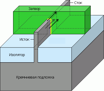 После внедрения транзисторов с «плавниковым затвором» (FinFET) в 22-нанометровом процессе получилось так, что транзисторная плотность все еще могла увеличиваться, пока длина затвора (20–26 нм) и некоторые другие размеры оставались почти неизменными. Из-за свойств многозатворных транзисторов приходилось считать так называемую эффективную длину затвора-плавника: две высоты плюс одна ширина (то есть расстояние от истока до стока). Очевидно, что с такой существенно измененной геометрией бесполезно применять старую схему привязки технормы к «длине затвора».