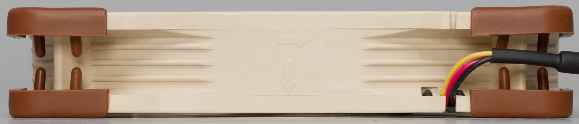 На углах рамки закреплены традиционные виброизолирующие накладки. Польза от них и от антивибрационных крепежных стоек нулевая, что было нами доказано (см. Процессорные охладители Noctua для разъема AM4 и Обзор вентиляторов Noctua серий NF-A12x25 и NF-P12 redux).