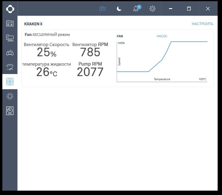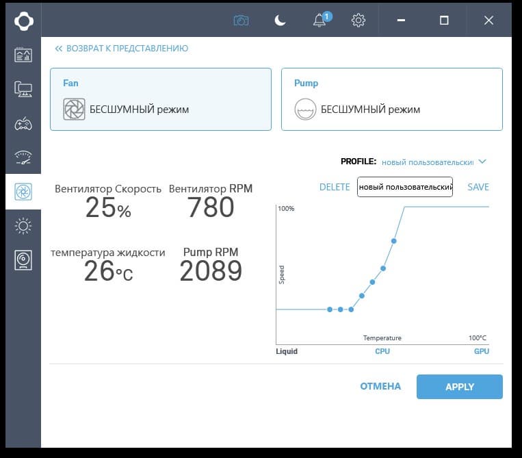 Но управлять работой вентиляторов, помпы и подсветки у нас не получилось.