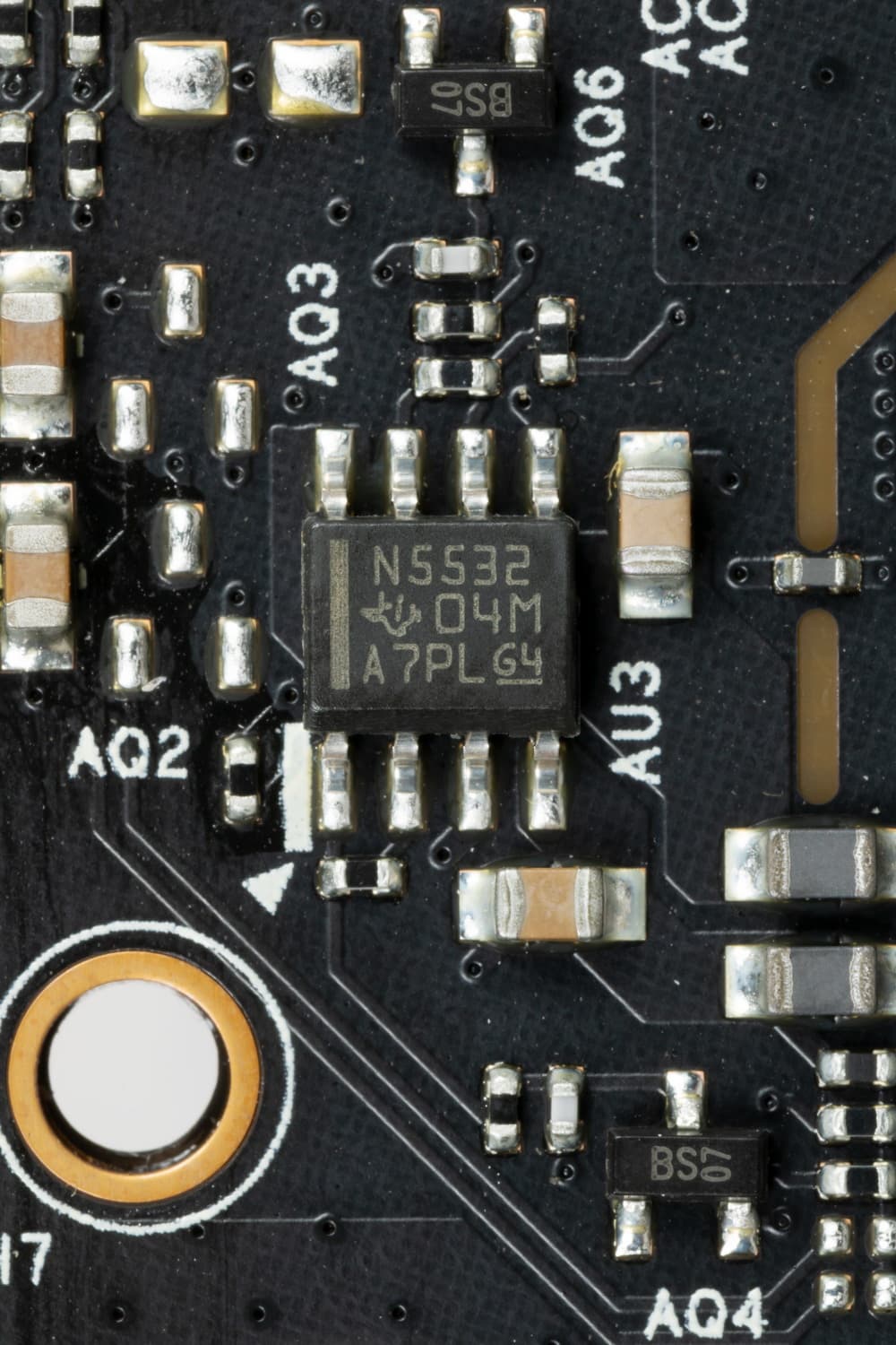 также аудиотракт содержит операционный усилитель NE5532P (Texas Instruments).