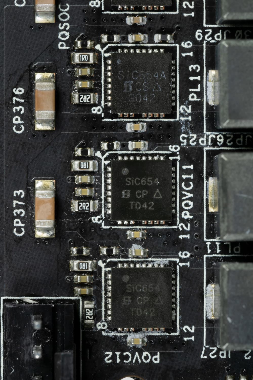 Каждый канал фазы имеет суперферритовую катушку и MOSFET SiC654A от Vishay.