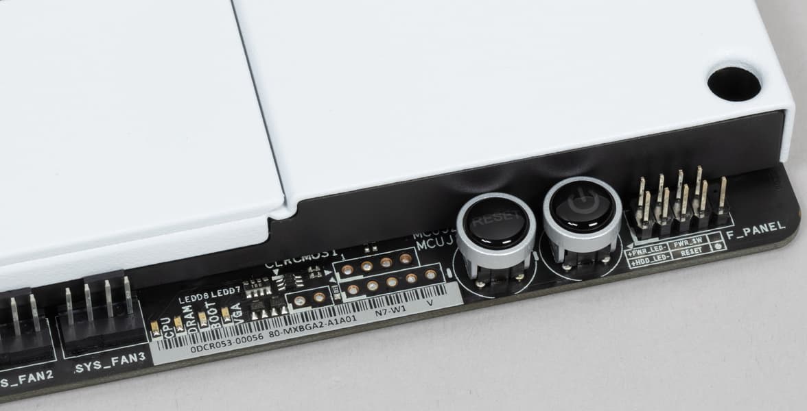 Стоит еще раз отметить дизайн платы с белым покрытием: такая модель шикарно будет смотреться в белых корпусах. В качестве недостатка выделим отсутствие штатного охлаждения у M.2-накопителей. Понятно, что можно купить накопители со своими радиаторами, однако их применение нарушит целостность дизайна и стиля.