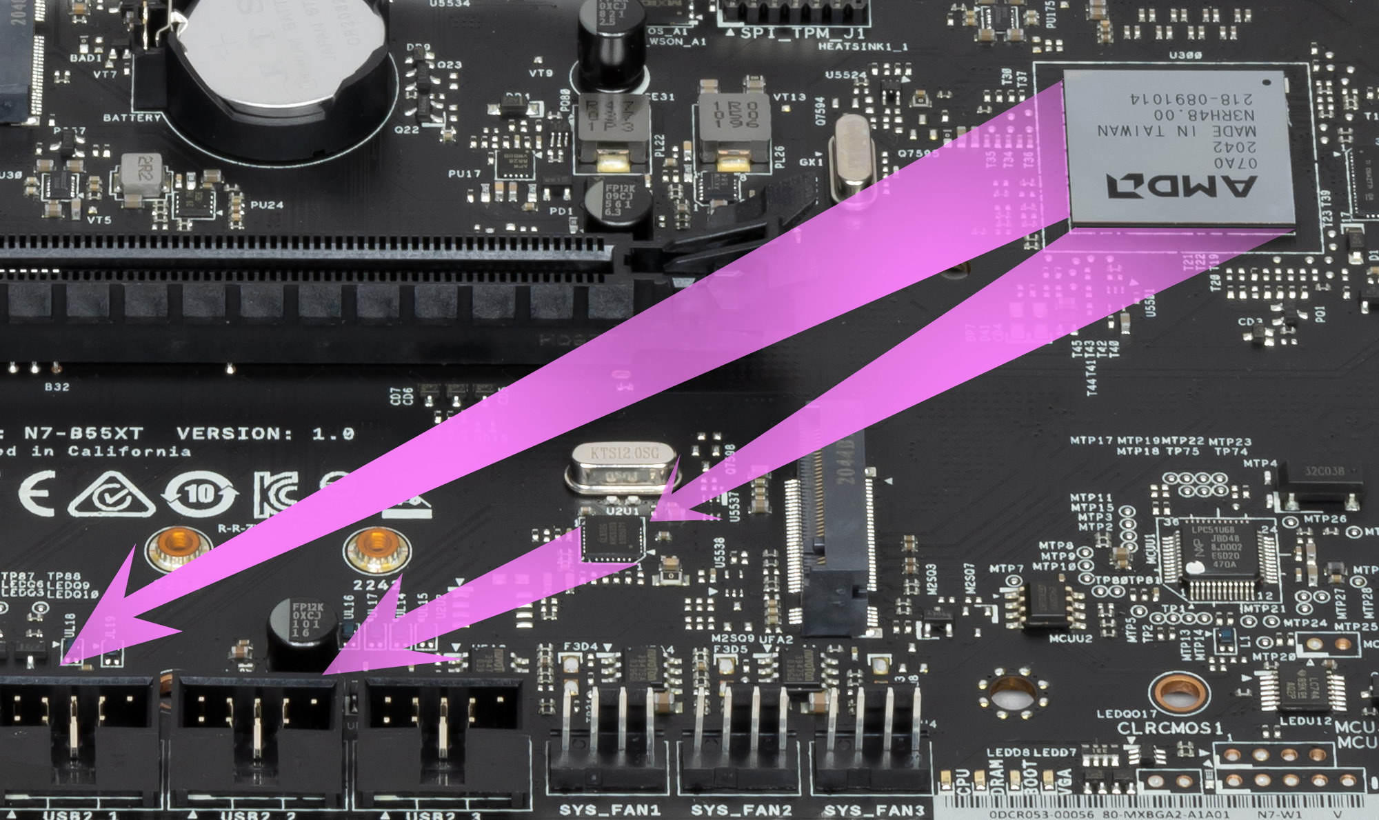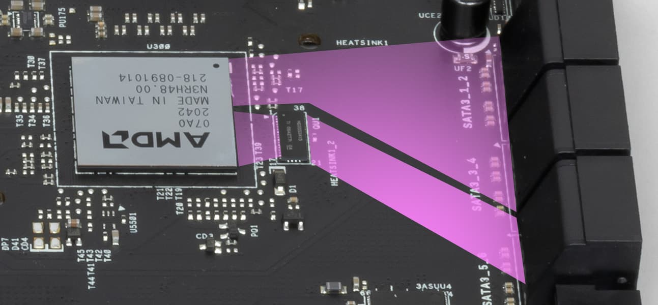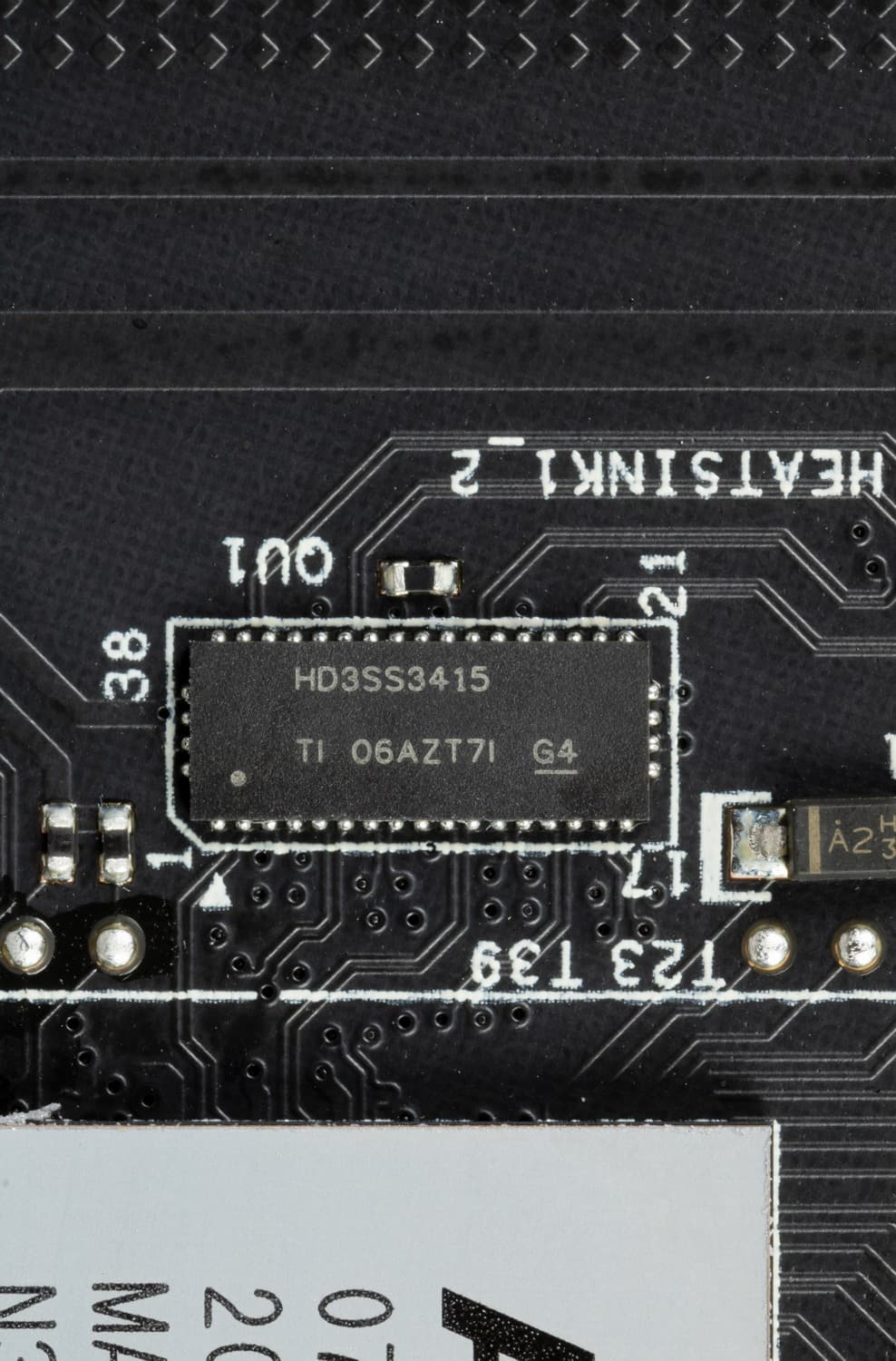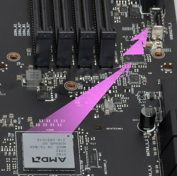 Напомню, что порты SATA 5,6 делят ресурсы с M.2_2, поэтому есть мультиплексор HD3SS3415 от Texas Instruments.