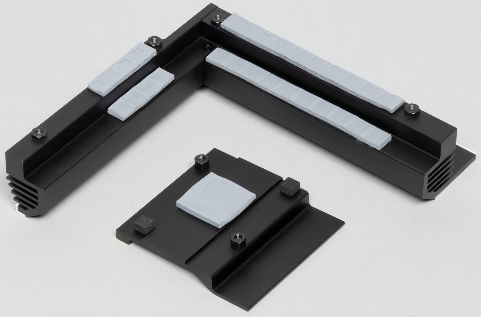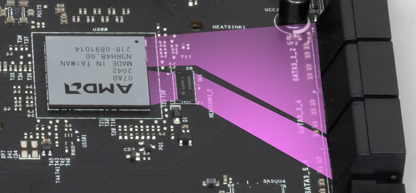 VRM-секция имеет свой сдвоенный радиатор, части которого соединены под прямым углом.