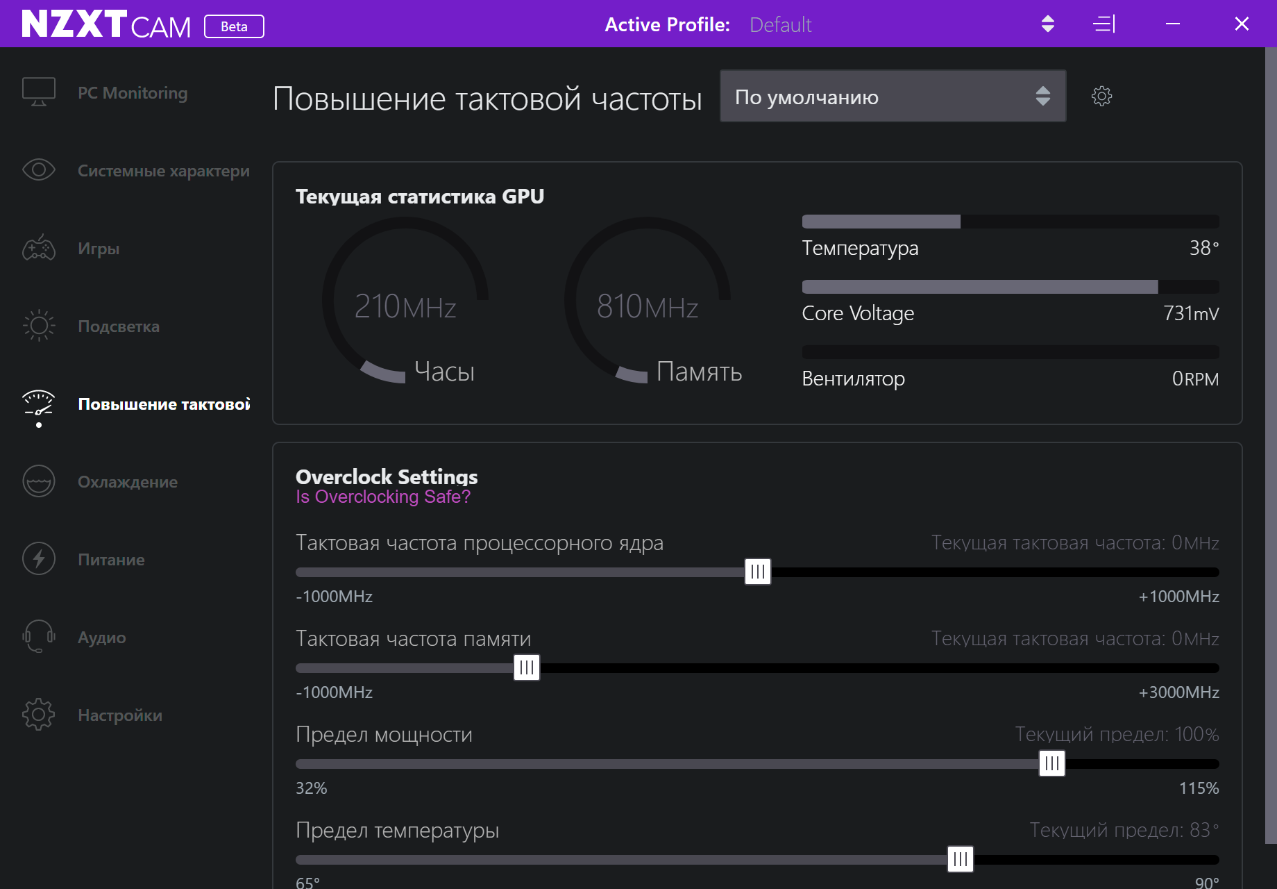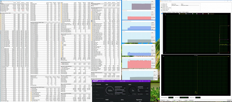 Вот это уже совсем другой разговор! Процессор стал получать частоты вплоть до 4,5 ГГц ядрам, в основном используя 4,1 — 4,3 ГГц. Сравните с изначальными 3,8. Понятно, что можно открыть BIOS и вручную выставить хоть 4,7 ГГц, лишь бы процессор потянул, да и СО тоже. Но вопрос в том, что как получить максимум производительности, не мучая голову разбирательством в этих настройках в BIOS. А вот так и можно, RM дает хороший шанс. В принципе, отличный вариант!
