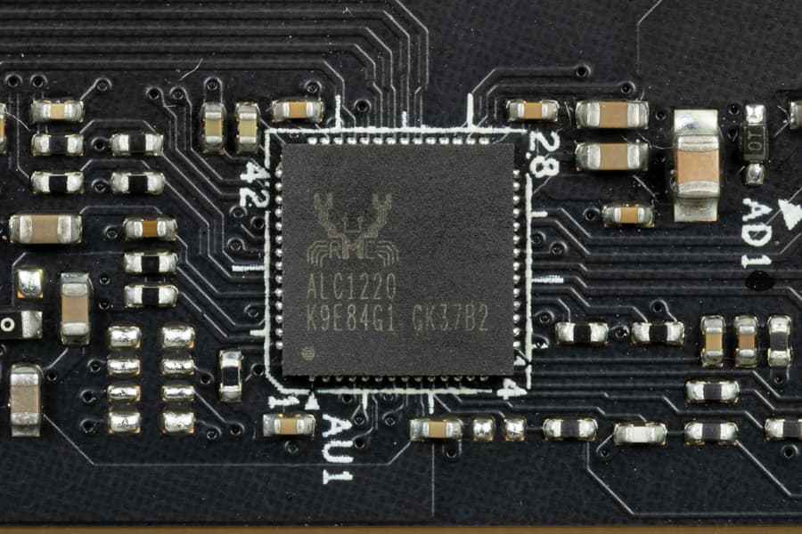 Как и во всех современных материнских платах звуком заведует аудиокодек Realtek ALC1220. Он обеспечивает вывод звука по схемам до 7.1.