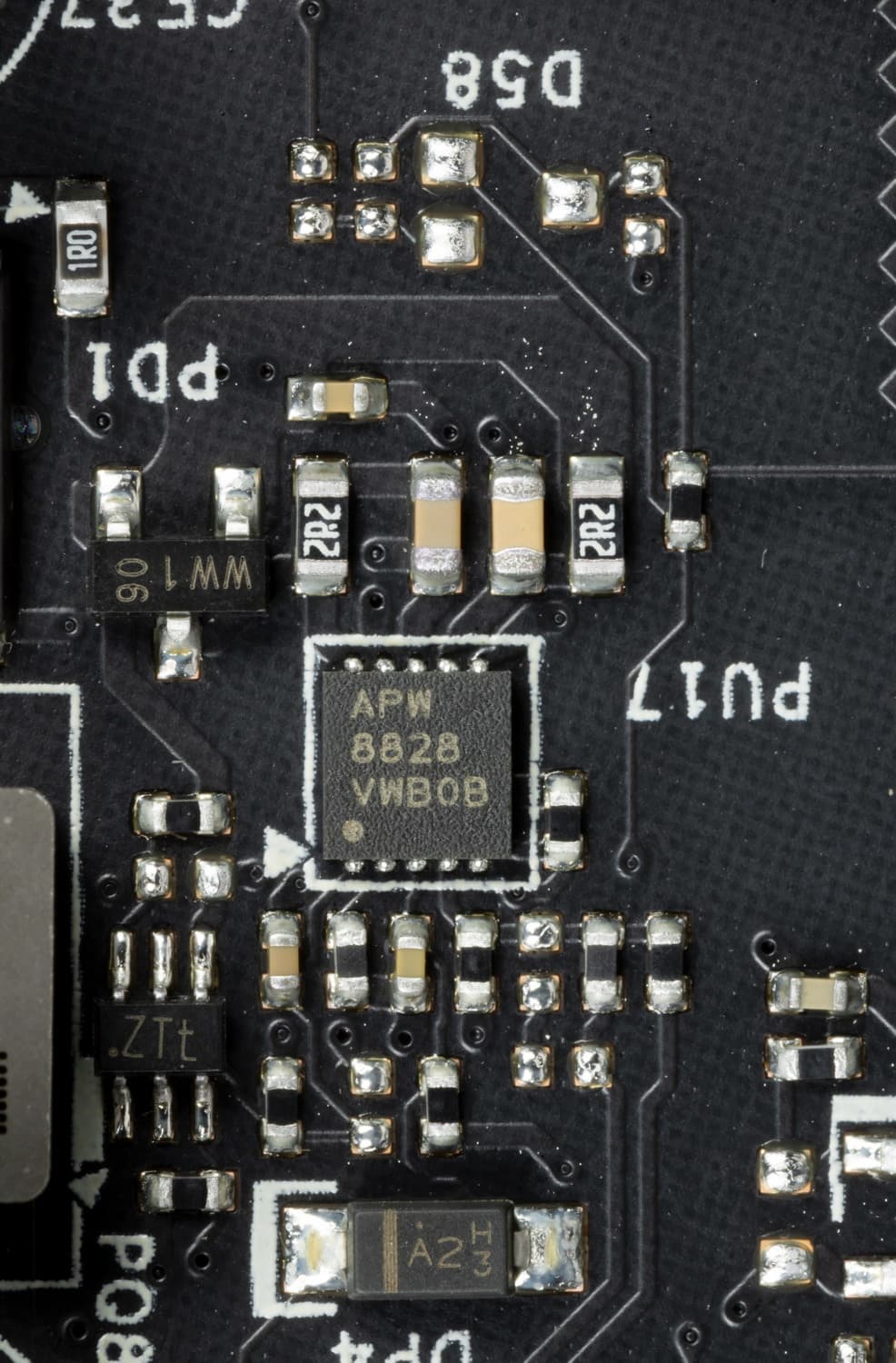 Они расположены на оборотной стороне платы (ISL6617A от того же Renesas, бывшей Intersil).